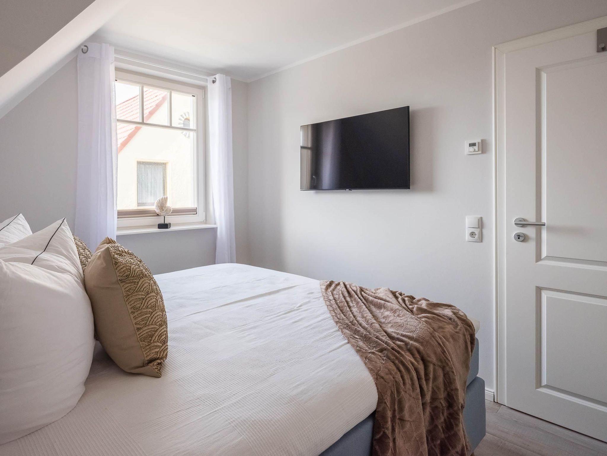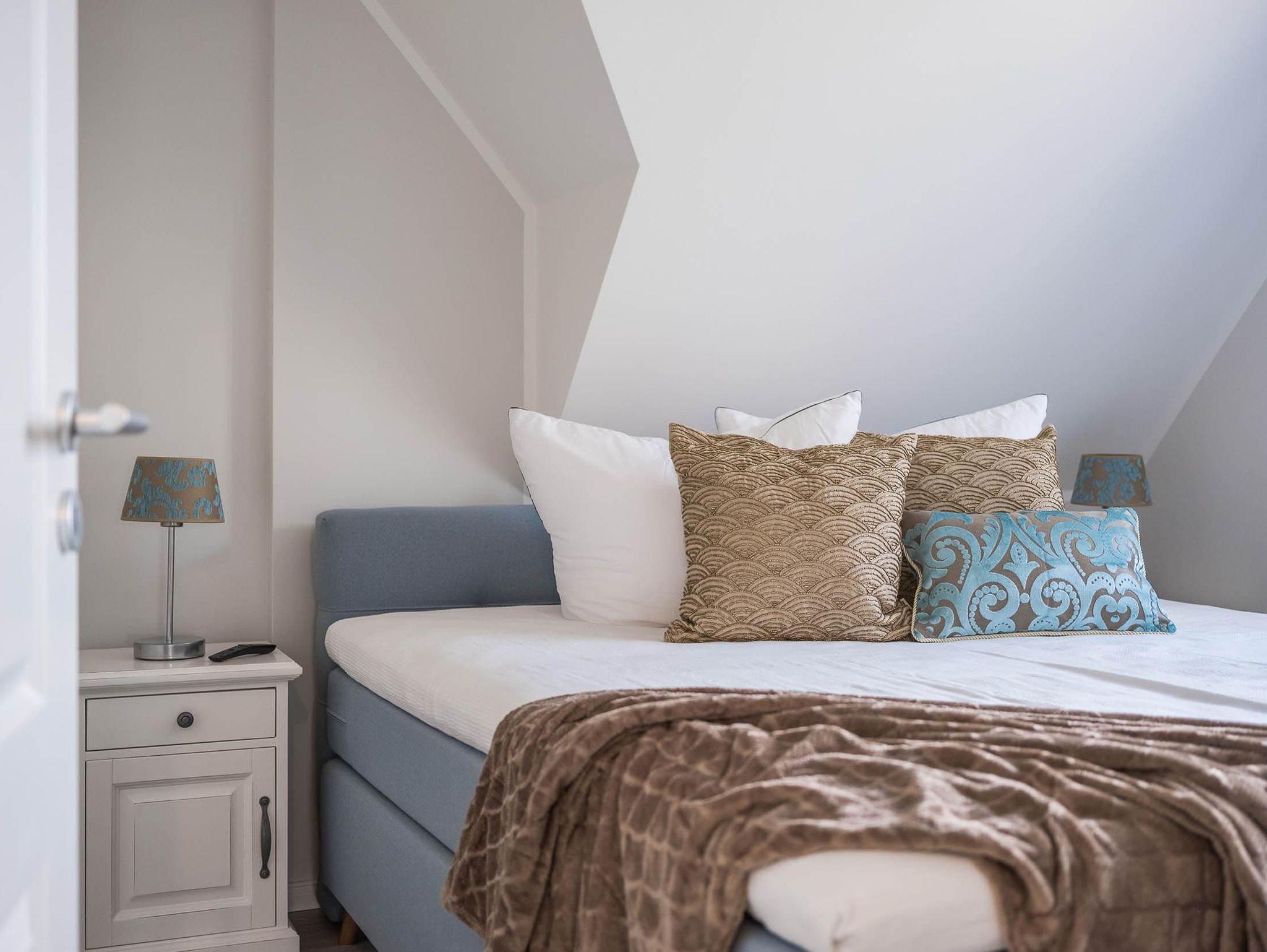 Am Ende von ereignisreichen, sportlichen oder auch entspannten Tagen in Zingst und Umgebung ruhen Sie sich am besten auf dem Marken-Boxspringbett im größeren oder auf Marken-Schlafmatratzen im kleineren Schlafzimmer aus. Für die ganz Kleinen gibt es ein aufklappbares Kinderreisebett inkl. Matratze. Zur Ferienwohnung gehört 1 Pkw-Stellplatz und ein großer Schuppen, in dem Fahrräder, Bollerwagen oder auch Kinderwagen untergestellt werden können.