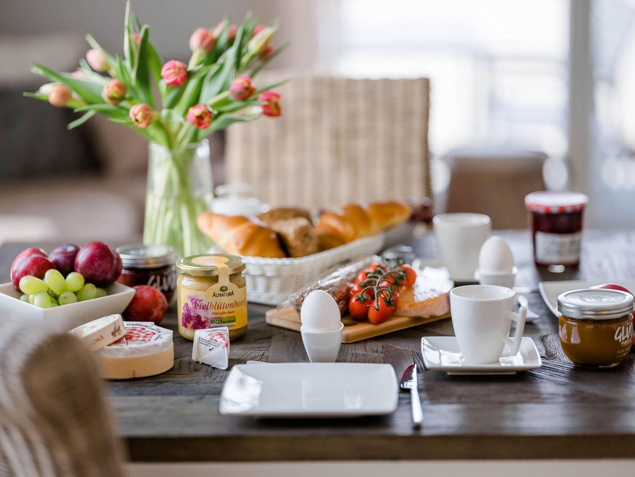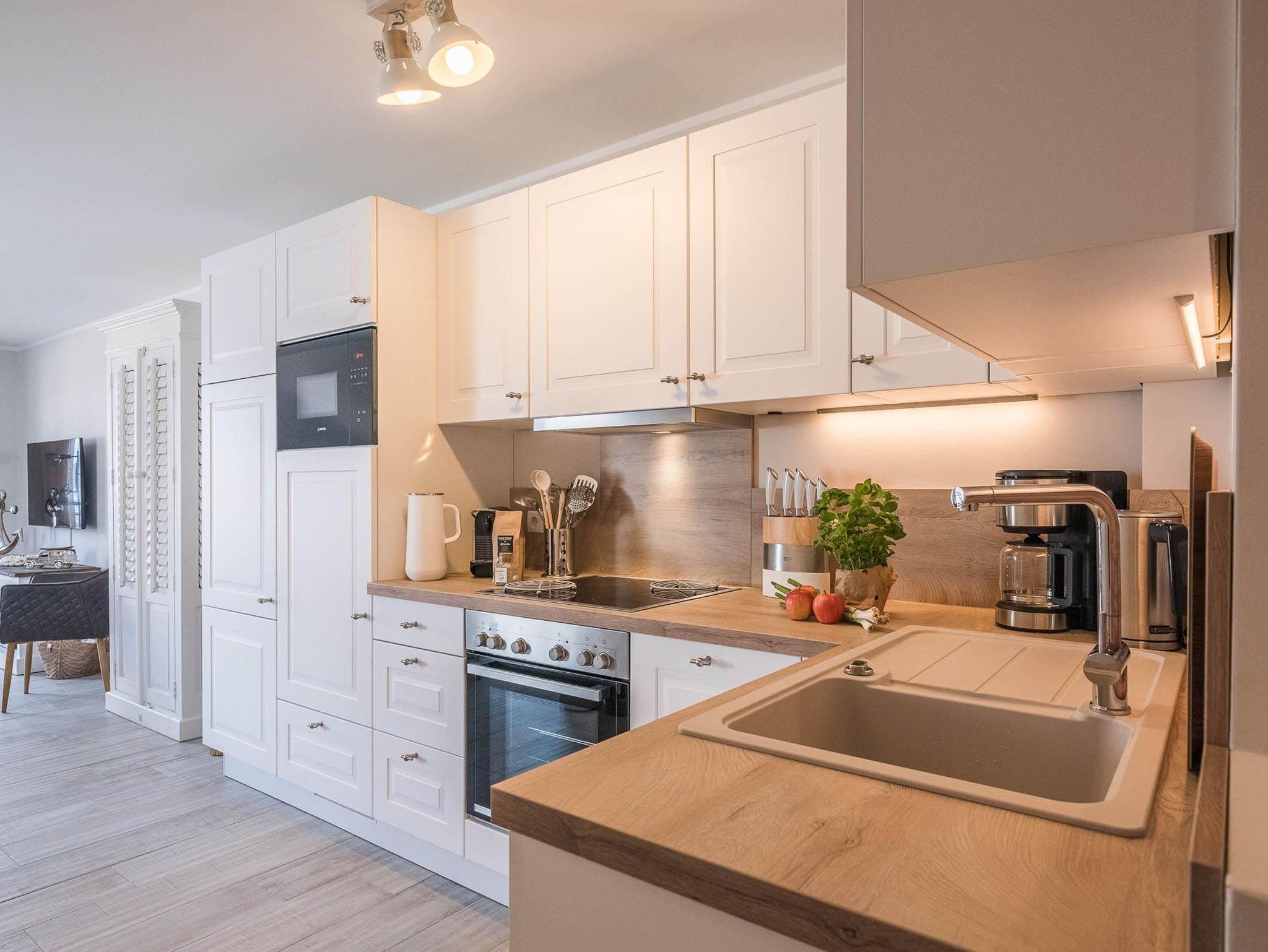 Ein Sony Heimkinosystem (blueray, DVD, CD, bluetooth, Radio) komplettiert die multimediale Ausstattung, sei es mit Radio beim Frühstück, Ihrem Online-Videoanbieter am Abend oder einfach nur Fernsehen mit tollem Sound. Zum Essen bieten sich die ca. 5 min fußläufig erreichbaren Restaurants oder die vollständige Einbauküche an. Neben den Standardküchengeräten steht eine Nespresso-Kapselmaschine für Sie bereit.