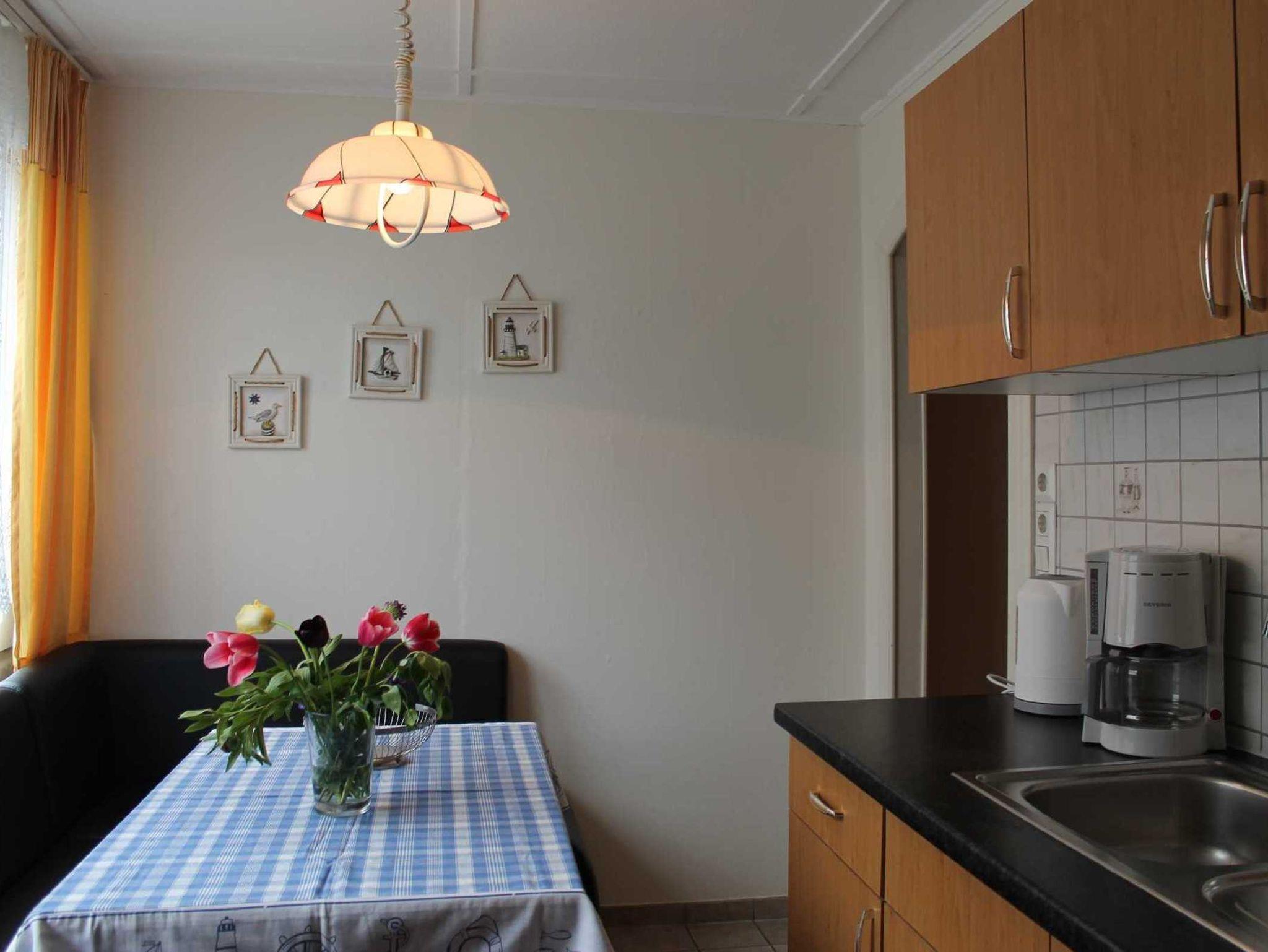 Das Haus verfügt über Wohnraum mit Kamin & Sitzecke sowie Eßecke, 2 Schlafräume (Doppelbett bzw. 3 Einzelbetten ), Küche (E-Herd, Backofen),