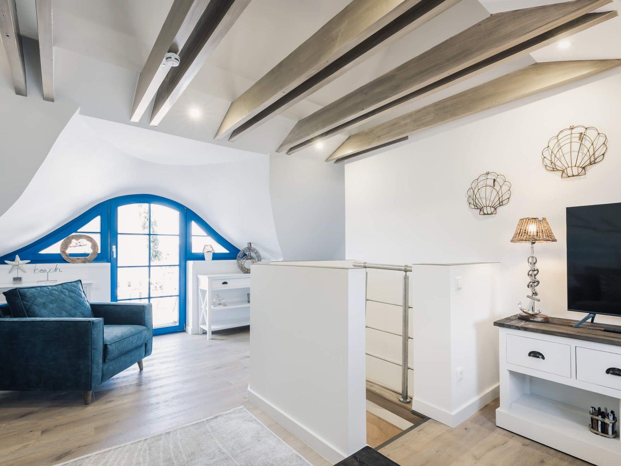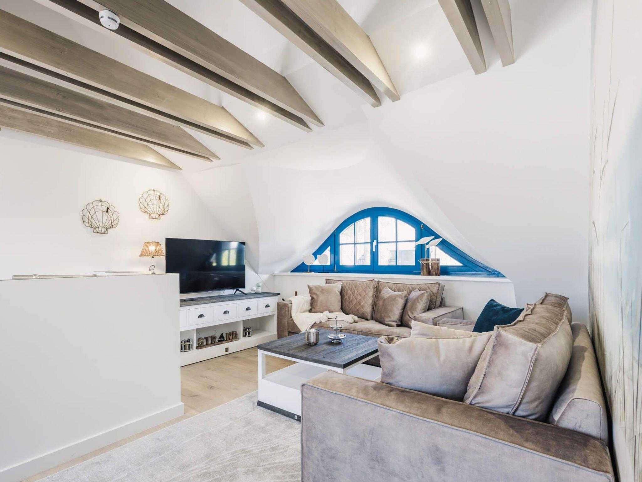 Erleben Sie auf 120 qm Wohnfläche ein Urlaubserlebnis sondergleichen. Hochwertige Materialien, warme Sandtöne in Kombination mit edlem Grau und eine stilvolle Einrichtung sorgen für ein wohliges Wohnambiente auf zwei Etagen.