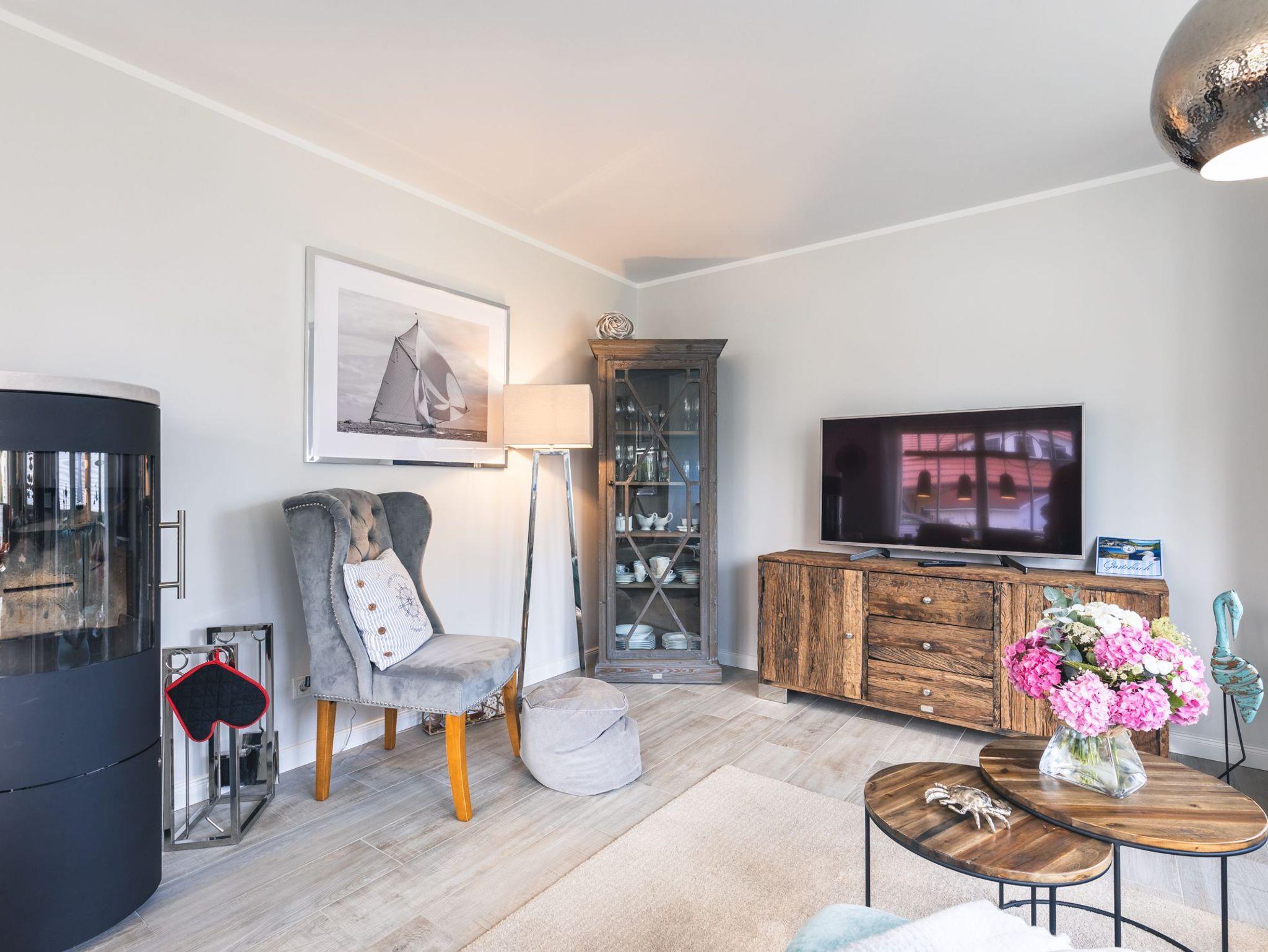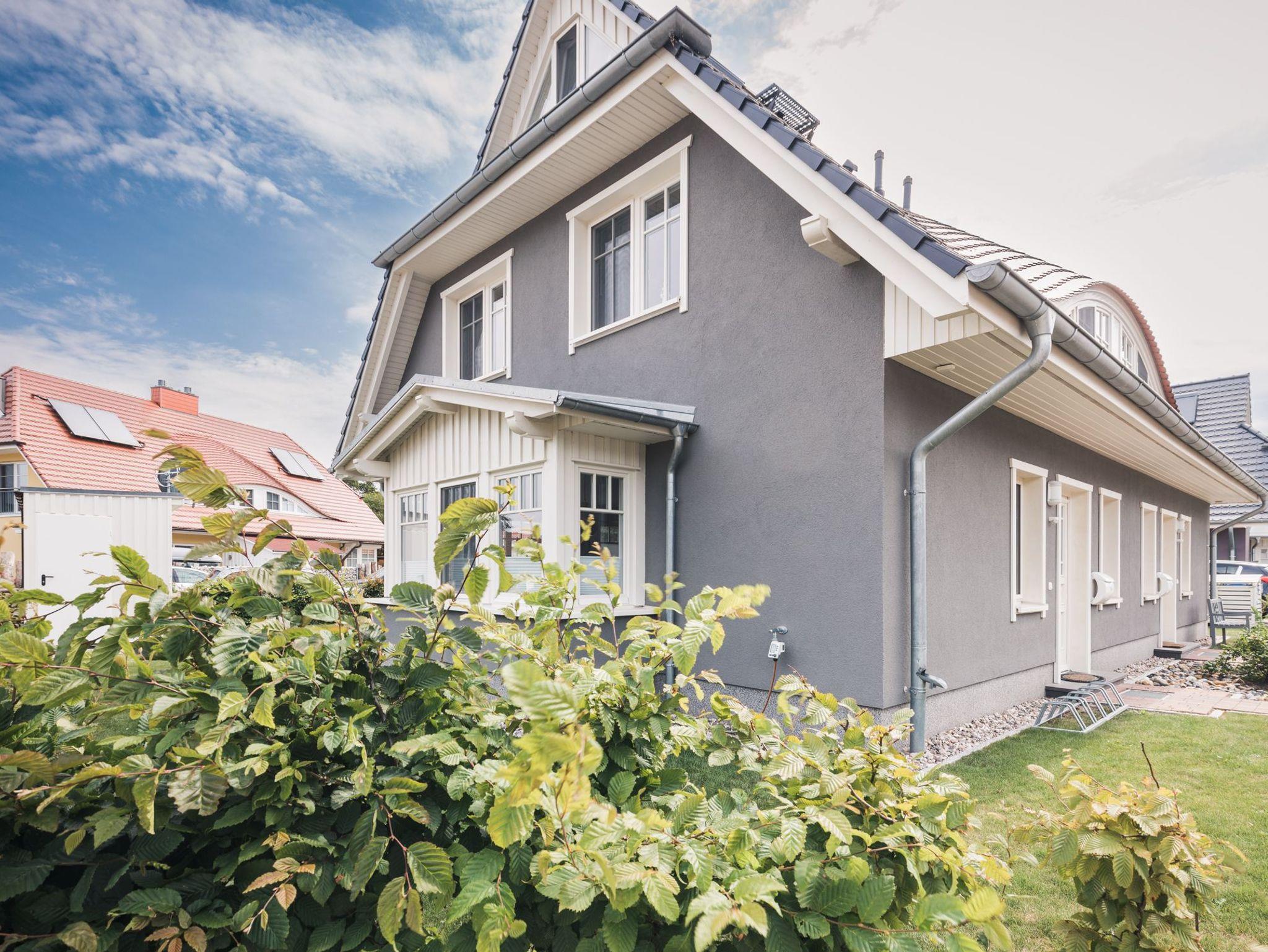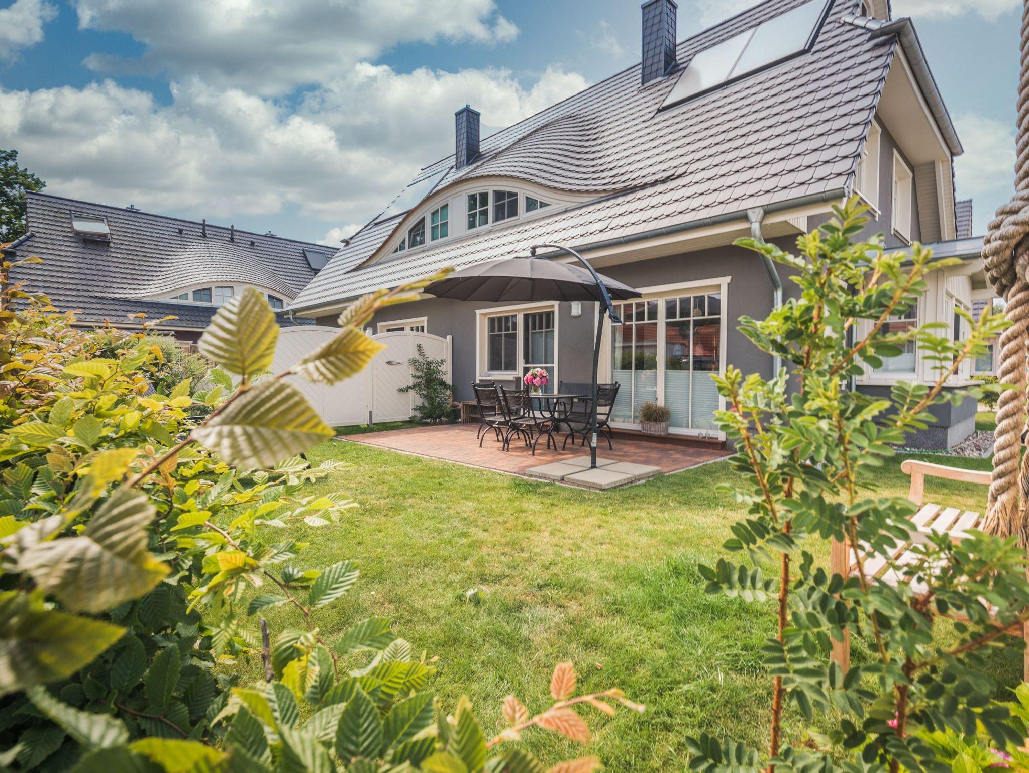 Gemütliche Haushälfte Hus Mats in Zingst mit Kamin, Garten und Terrasse, ideal für Familienurlaub nahe Ostseestrand und Ortskern.