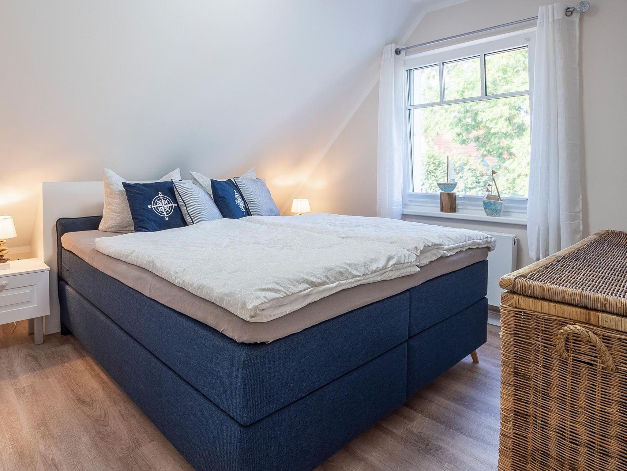 Das Schlafzimmer auf dieser Etage ist mit einem komfortablen Boxspring-Doppelbett ausgestattet, welches traumhaft erholsamen Schlaf garantiert.