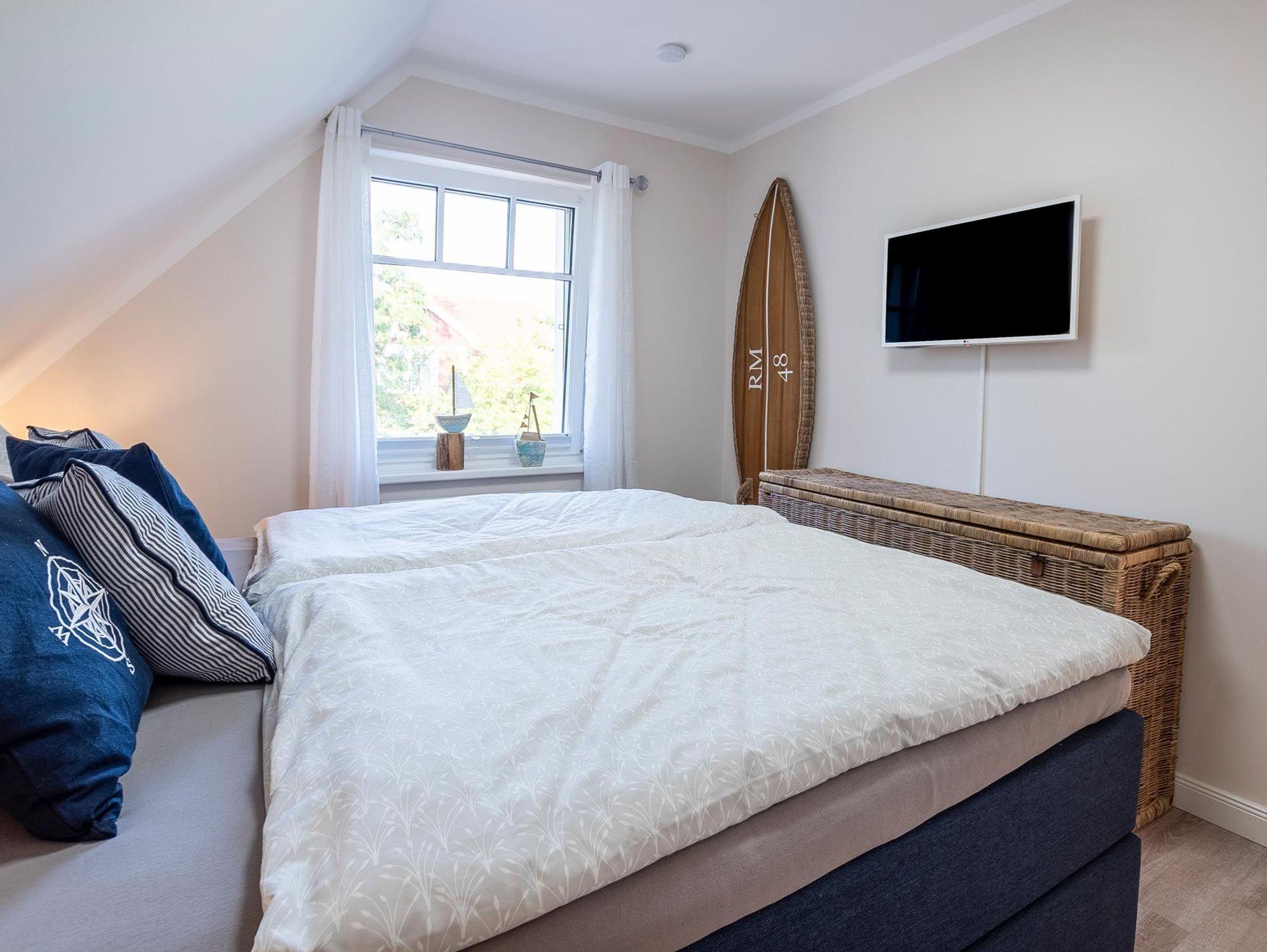 Unter dem Zingster Sternenhimmel befindet sich im Dachgeschoss ein weiteres Schlafzimmer welches mit zwei komfortablen Einzelbetten ausgestattet ist.