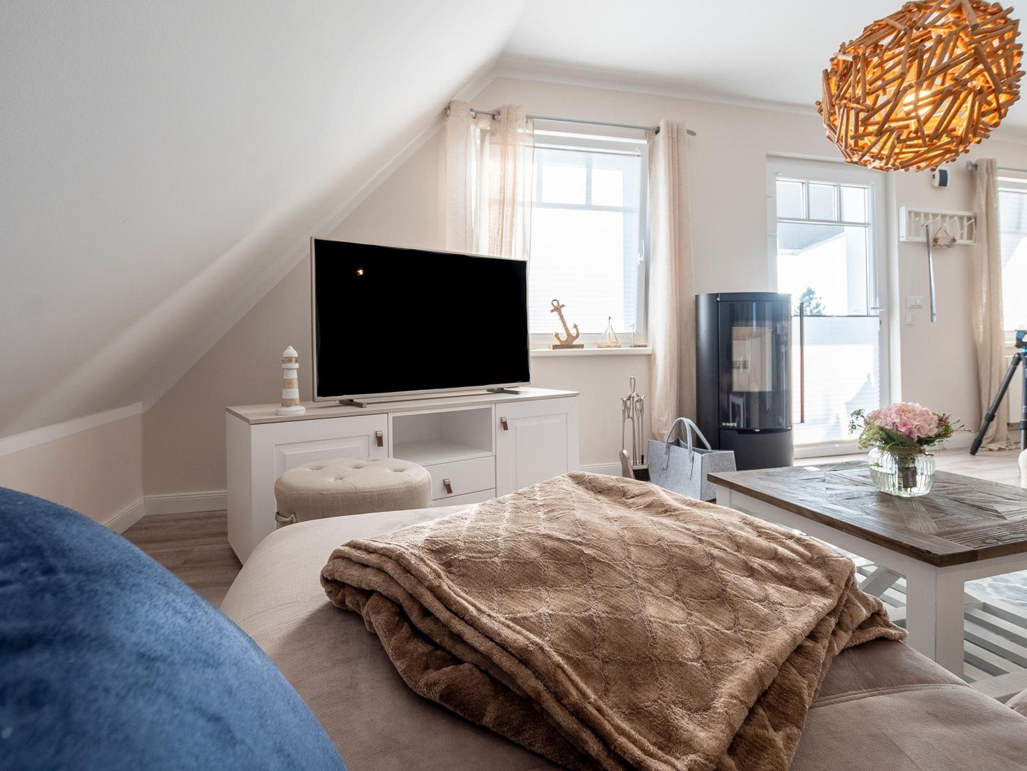 Die Ferienwohnung Treibholz II in Zingst bietet modernen Komfort mit Balkon, Kamin und kostenloser Sauna für einen erholsamen Urlaub.