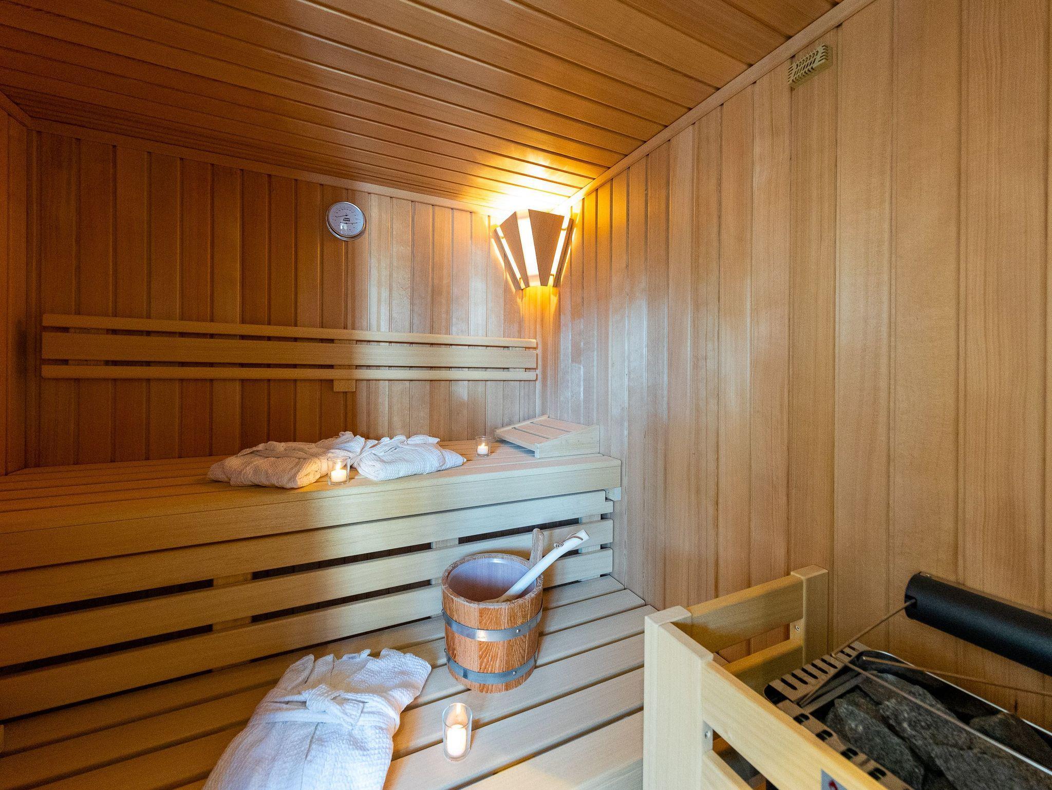 Das Ferienhaus bietet zwei moderne Bäder davon eine Dusche mit Sitzbank sowie eine Sauna in der Sie sich nach einem langen Strandtag entspannen können. Hier können Sie die Wärme genießen und neue Energie tanken.