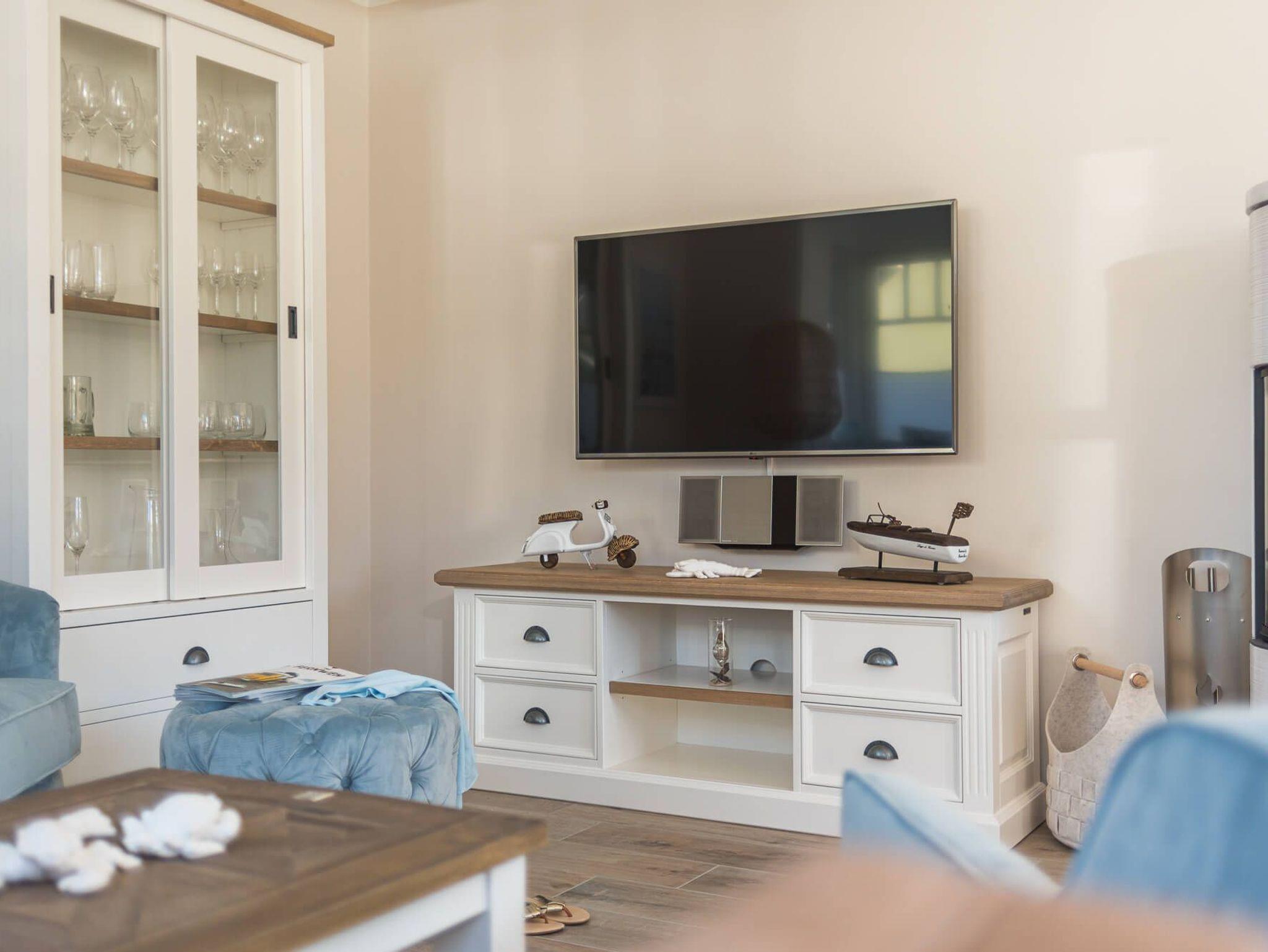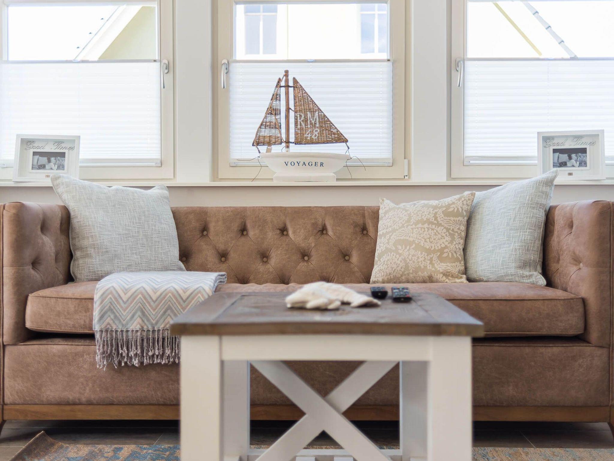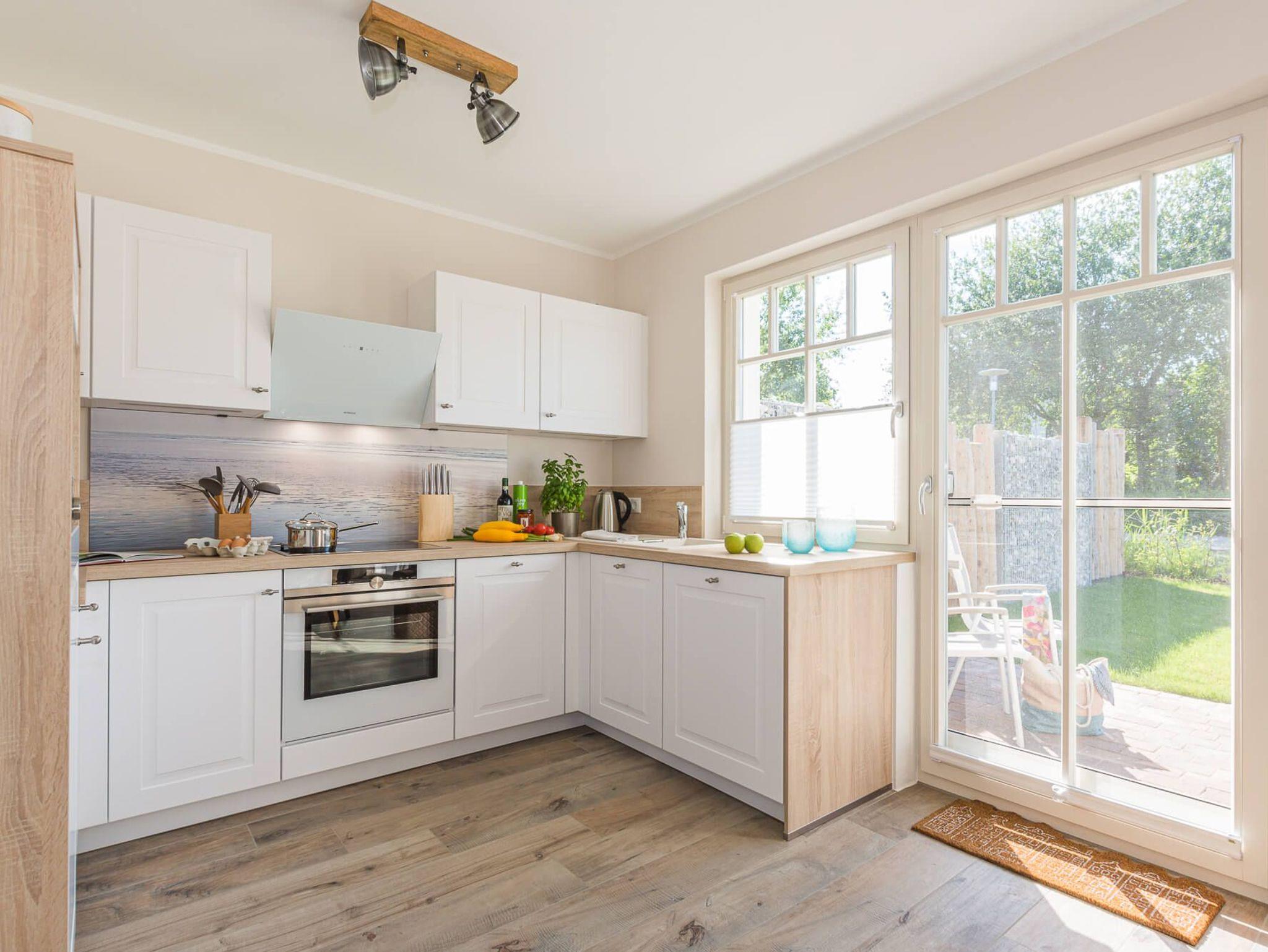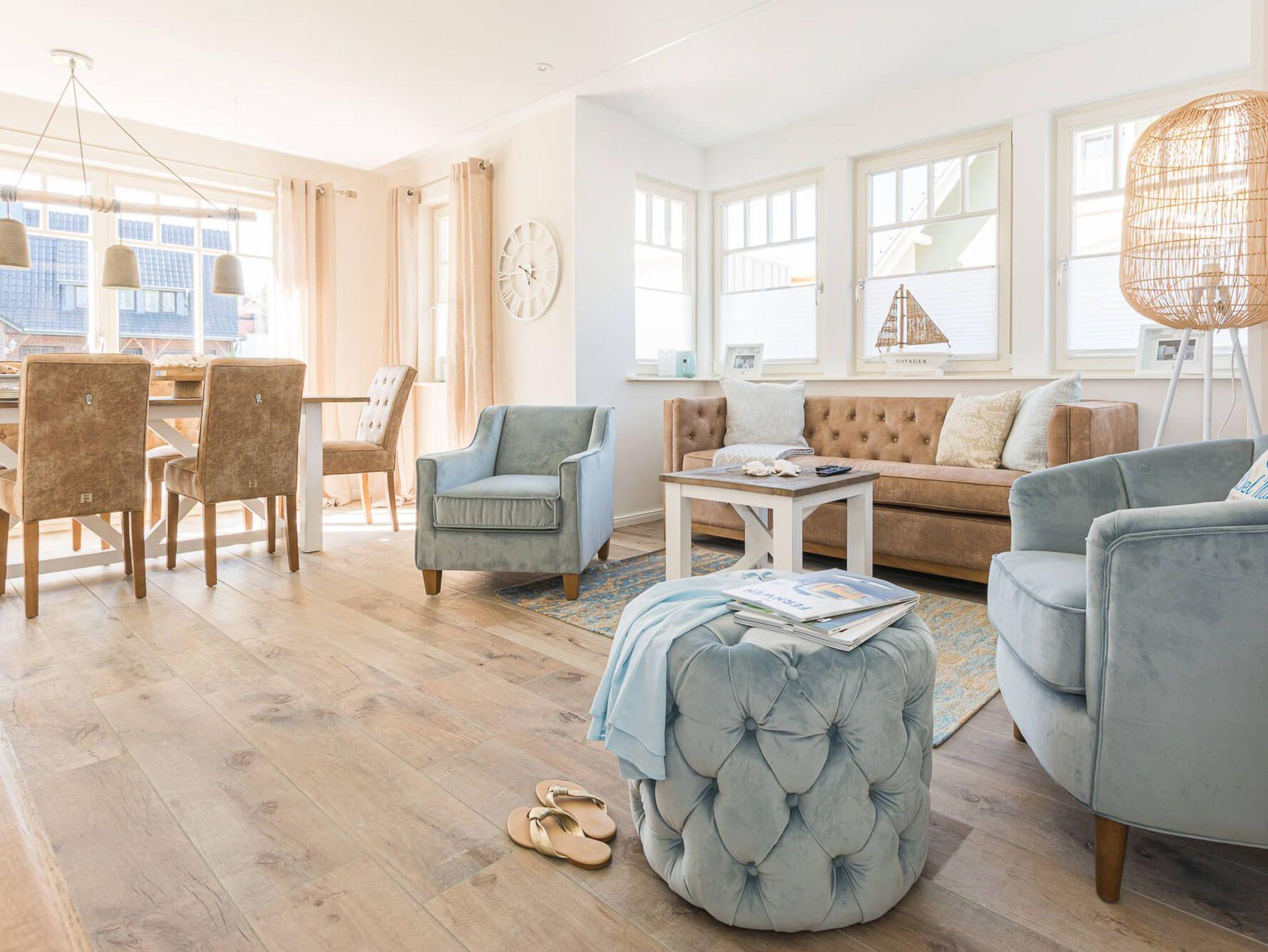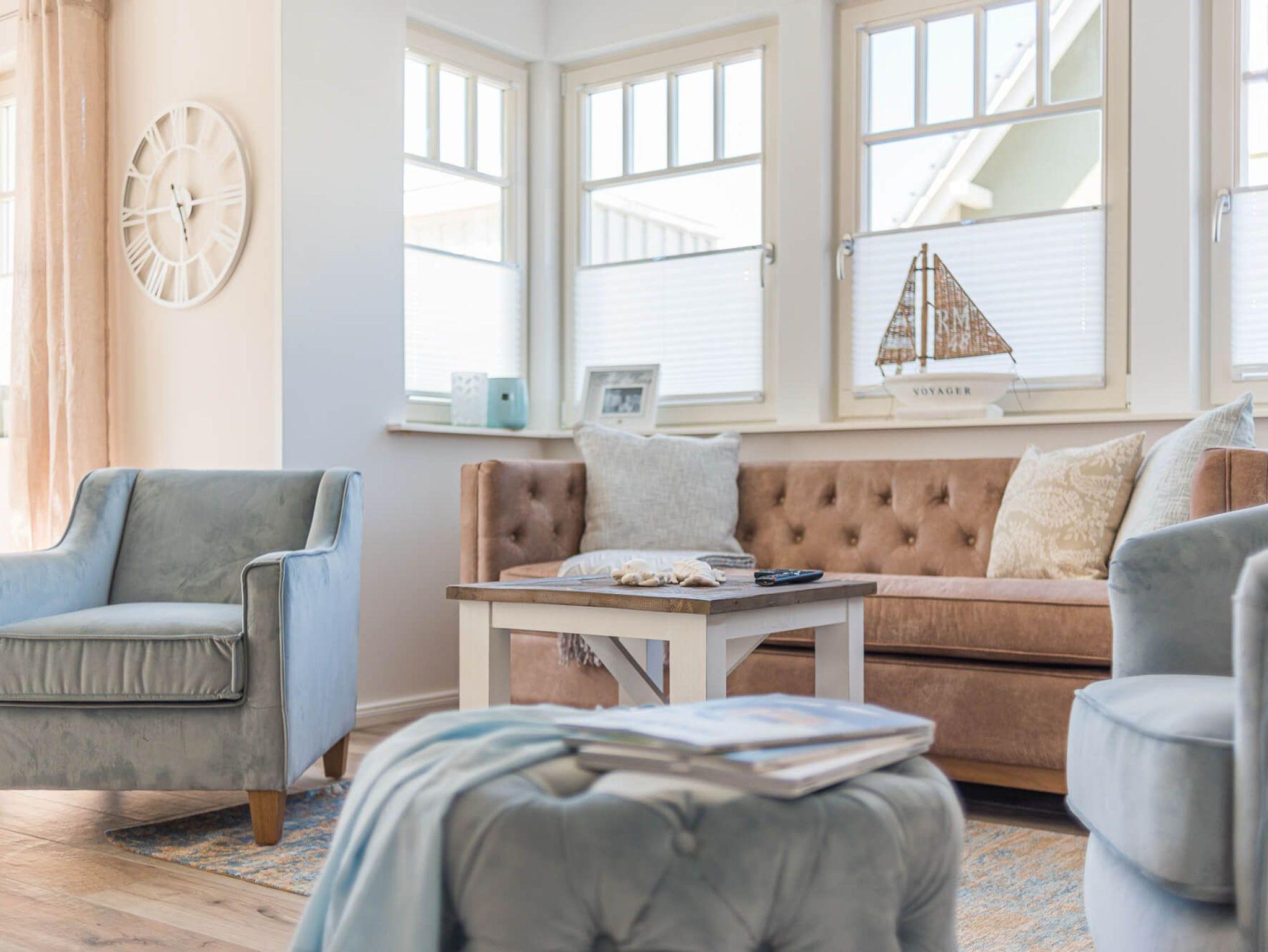 Treten Sie ein in die Doppelhaushälfte Meerzeit und lassen Sie sich von der modernen und hellen Einrichtung verzaubern. Die offene Gestaltung des Wohnraums mit Küche, Essbereich und Sofaecke lädt zum Entspannen und gemeinsamen Beisammensein ein. An kalten Tagen sorgt der Kaminofen für wohlige Wärme, während Sie an lauen Sommerabenden auf der Westterrasse die Abendsonne genießen können.