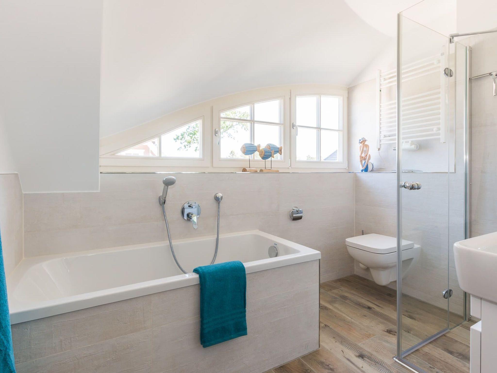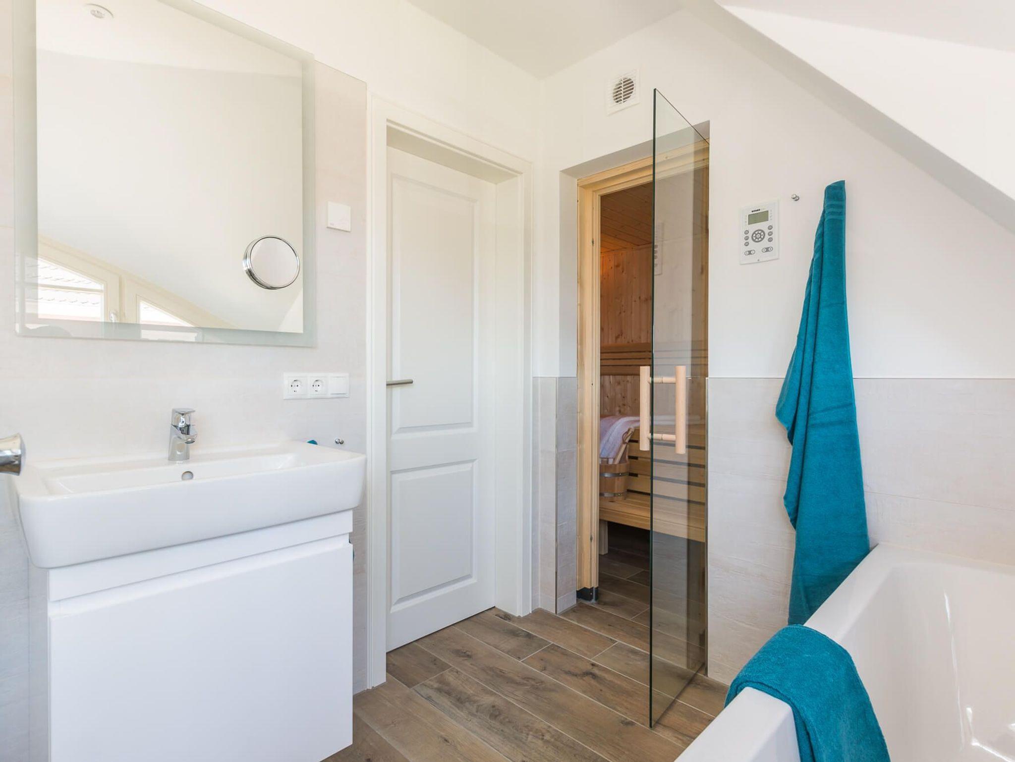 • 2 Bäder: Im Erdgeschoss befindet sich ein Gäste-WC mit Dusche, während das Bad im Obergeschoss mit einer Badewanne und Sauna ausgestattet ist ? perfekt zum Relaxen nach einem langen Tag am Strand oder in der Natur.