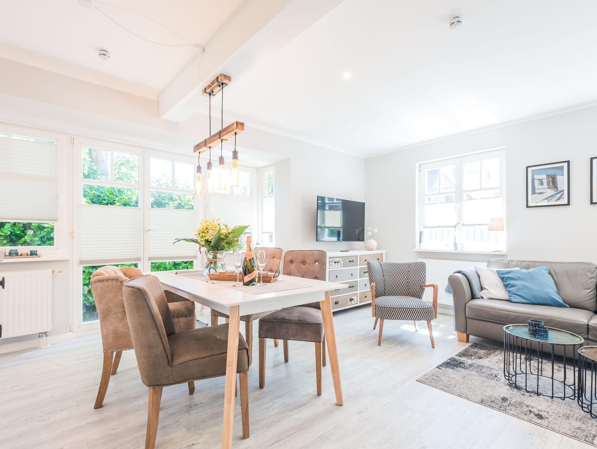Das Highlight des Ferienhauses ist ein kleiner, abgeschlossener Garten mit einer schön möblierten Terrasse und einem Strandkorb. Die idyllische, abgeschirmte Lage lädt zum Verweilen ein. Hier können Sie die Sonne bis in den Abend hinein genießen.