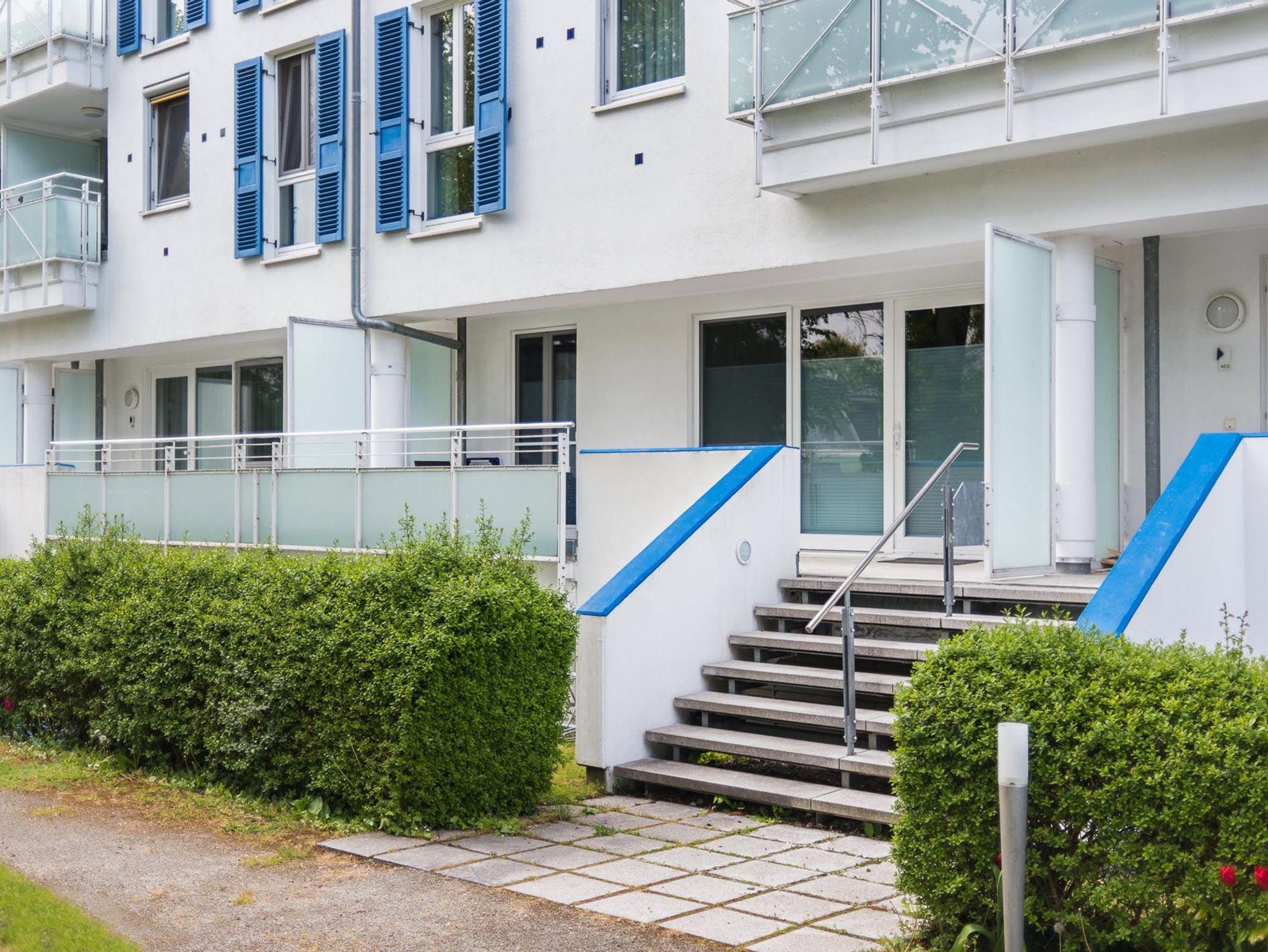 Vom Wohnzimmer aus hat man direkten Zugang zur großen möblierten Terrasse und kann hier wunderschöne Sommerabende verbringen.
