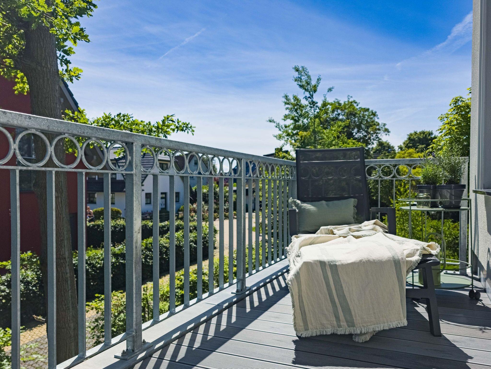 • Sonniger Balkon mit Liegen [&] Sonnenschirm