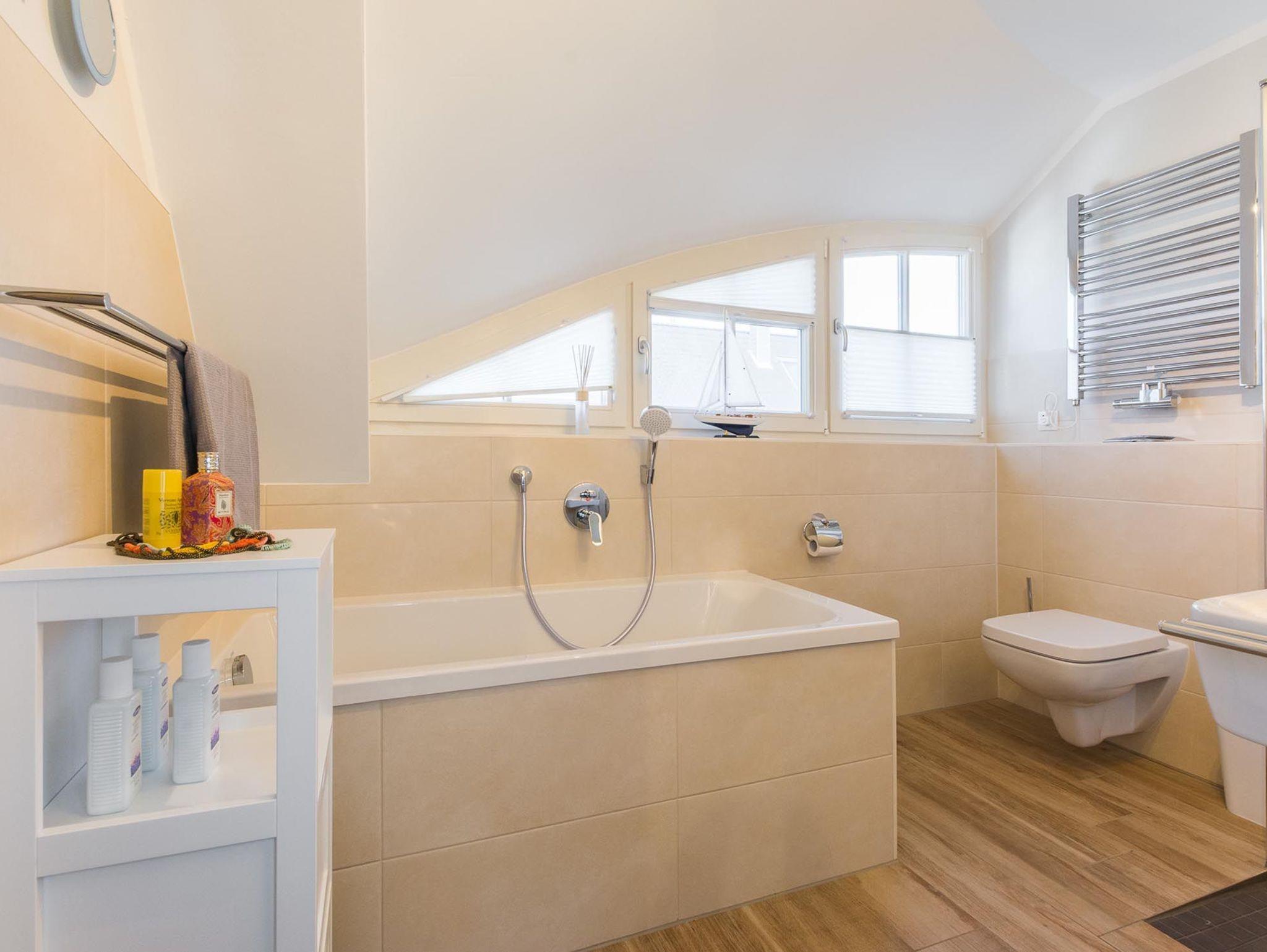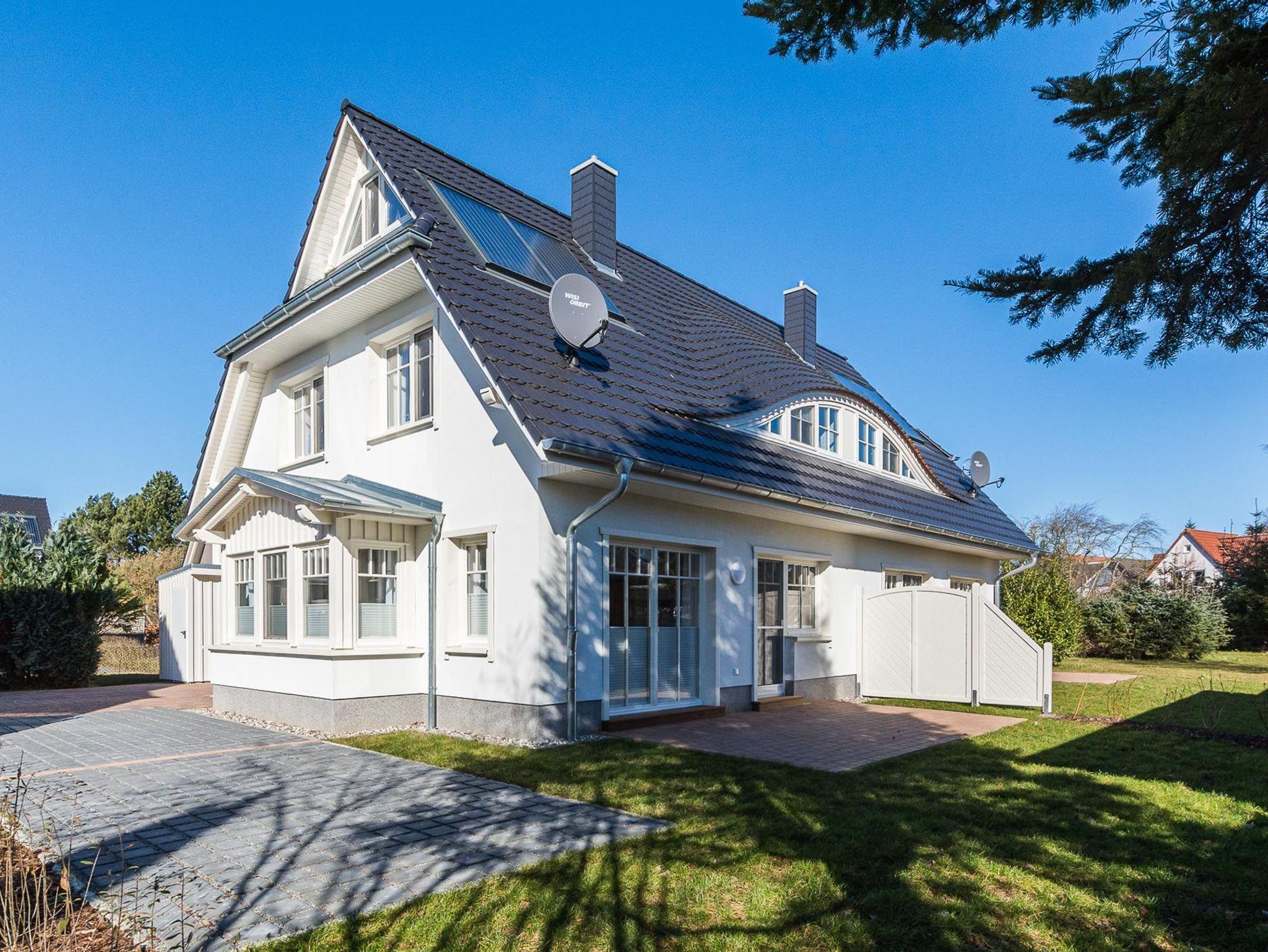Die gemütliche Doppelhaushälfte Haus Windrose in Zingst bietet Komfort, Sauna und große Terrasse für entspannte Urlaubsmomente.