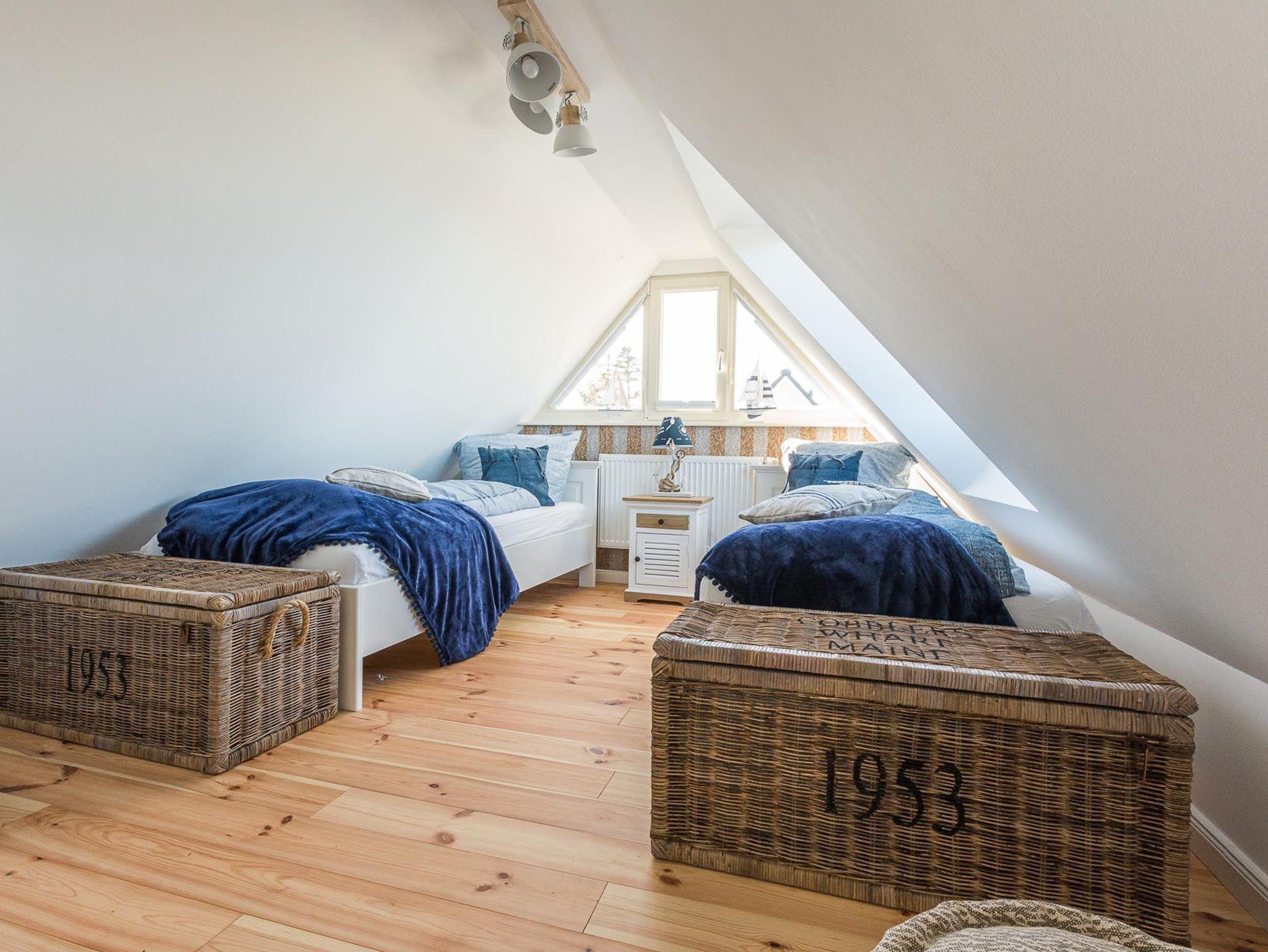 Unter dem Zingster Sternenhimmel befinden sich im Dachgeschoss zwei weitere gemütliche Einzelbetten.