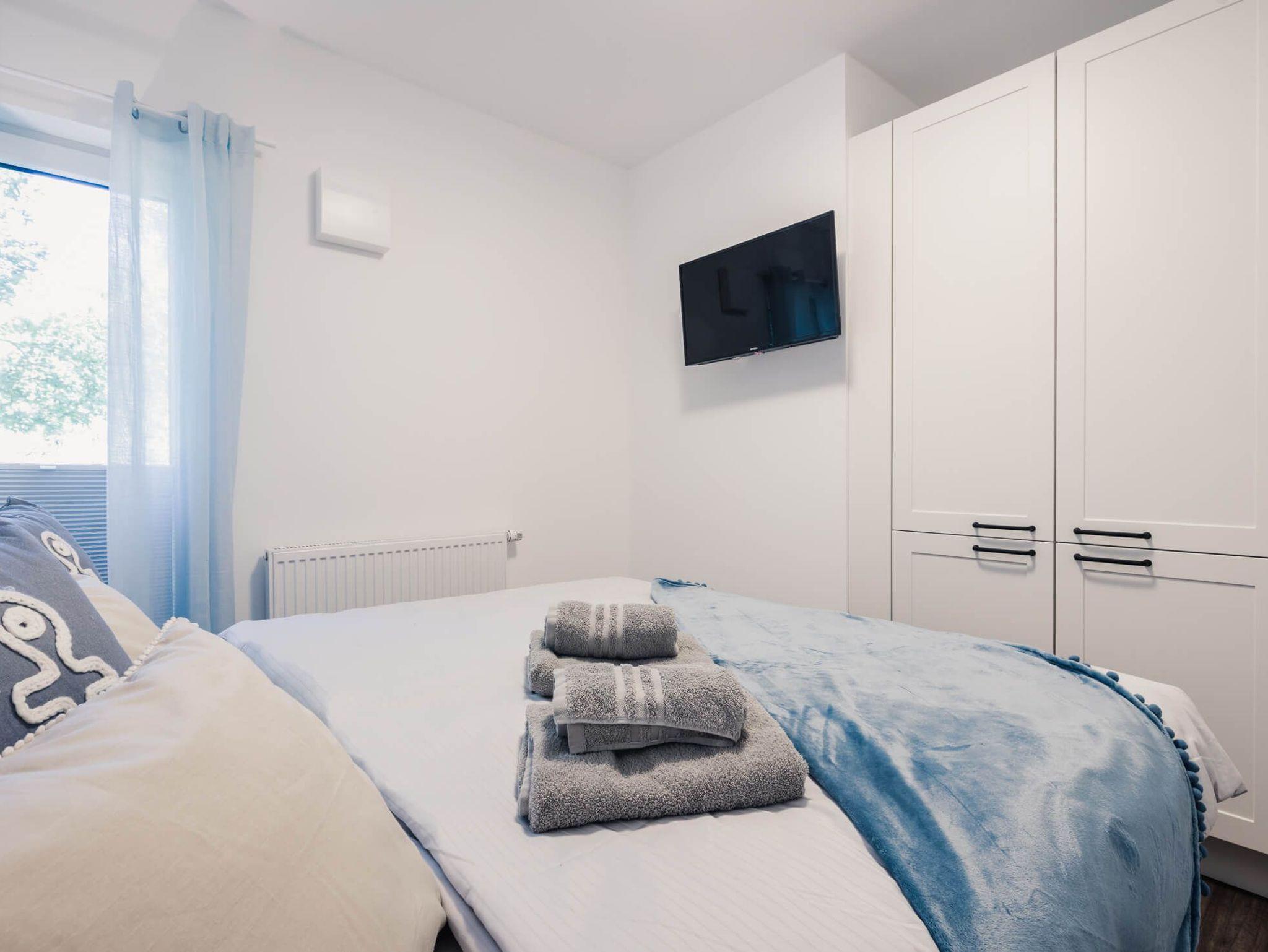 Die zwei Schlafzimmer sind mit hochwertigen Doppelbetten (Boxspringbetten) und Flachbildfernsehern ausgestattet.