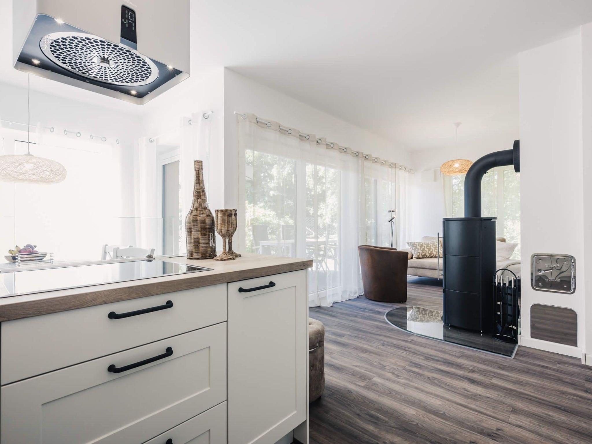 Die große Küche bietet Ihnen und Ihrer Familie viel Platz zum Kochen. So können auch ambitionierte Hobbyköche ihrer Leidenschaft im Urlaub nachgehen. Die offene Küche ist komfortabel eingerichtet, mit Ceranfeld, Geschirrspüler, Kühlschrank mit Gefrierfach, Wasserkocher, Mikrowelle u.v.m.