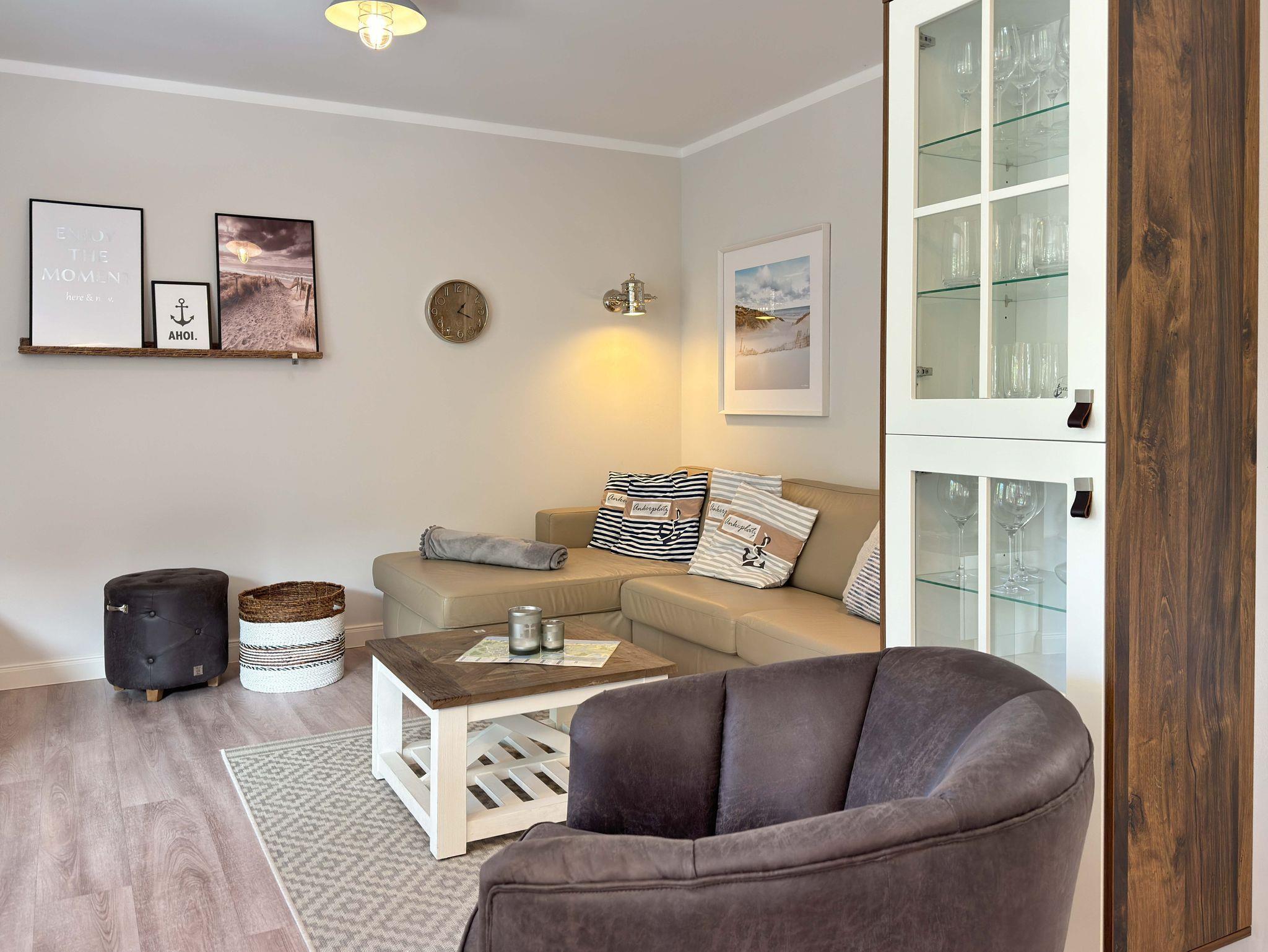 Luxuriöse Ferienwohnung Ankerplatz 32 in Zingst mit Sauna, Terrasse und Strandkorb für entspannte Ostseeferien.