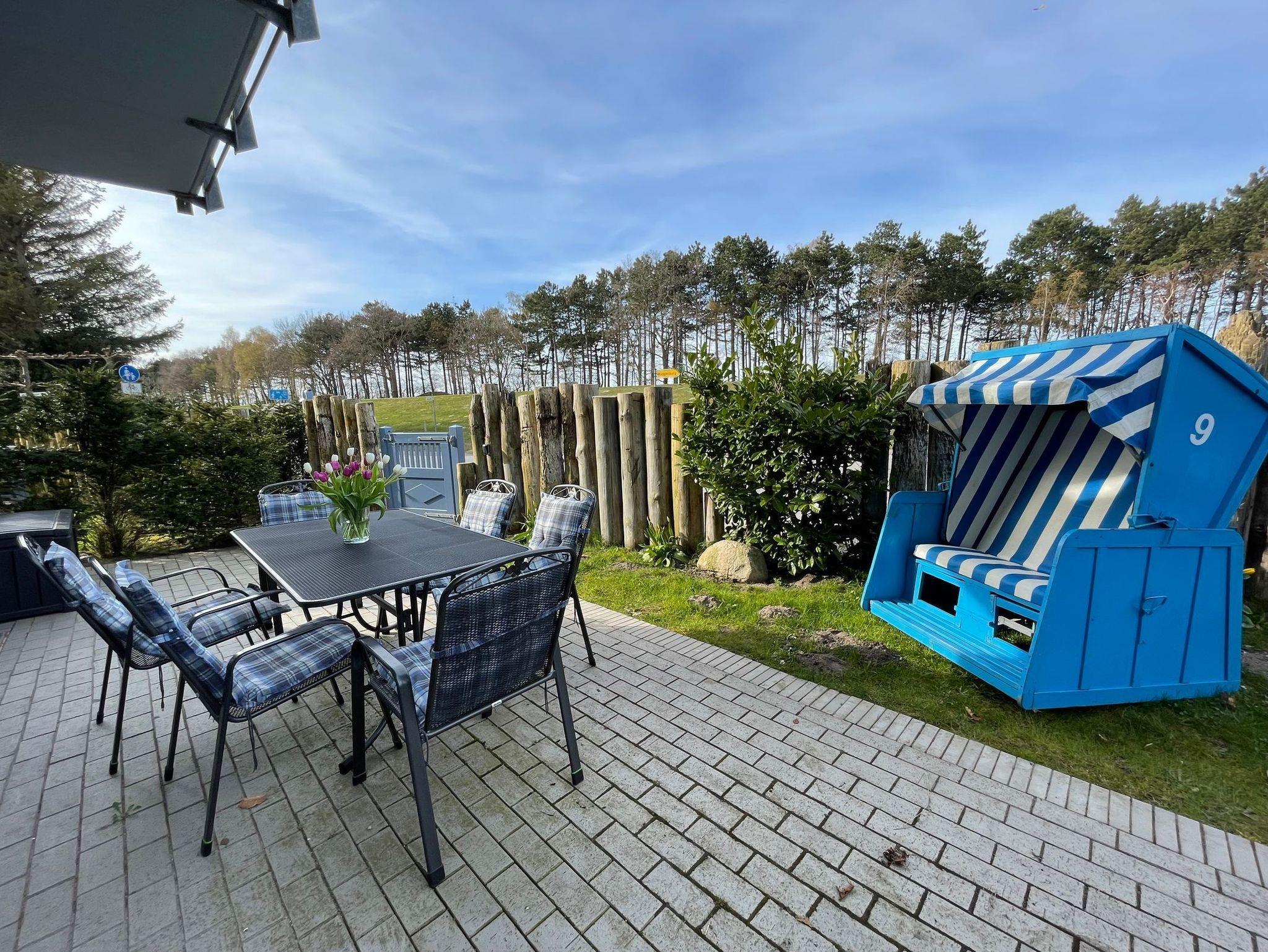 Strandwohnung mit Terrasse und eigenem Garten direkt am Ostseestrand von Zingst, perfekt für erholsame Urlaubstage.