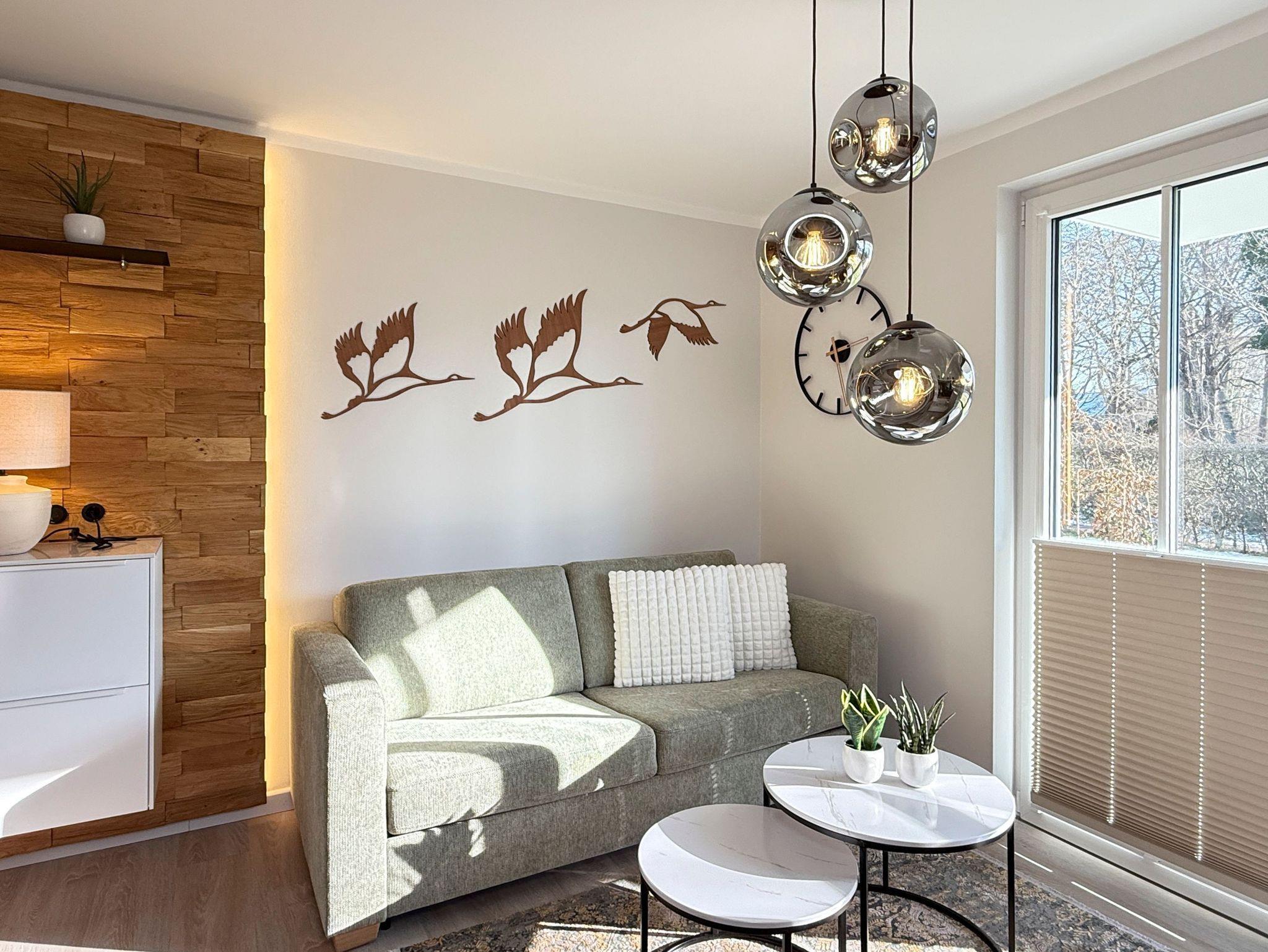 • Wohnbereich: Heller Wohnraum mit bequemer Sitzgruppe und Smart-TV für entspannte Stunden.