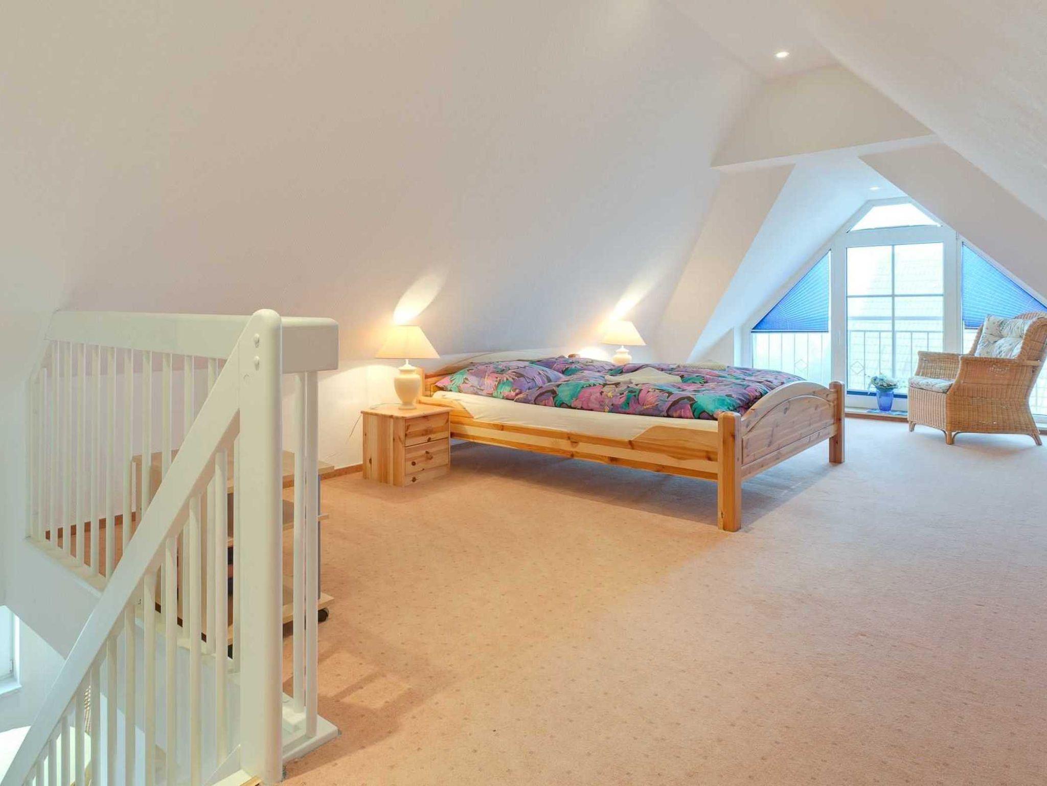 Im Obergeschoss, das man über eine Treppe vom Wohbereich aus erreicht, befindet sich die offene Schlafgalerie mit Doppelbett und Einzelbettliege und DU/WC. Hier befindet sich auch das Bad mit Du/Wc.