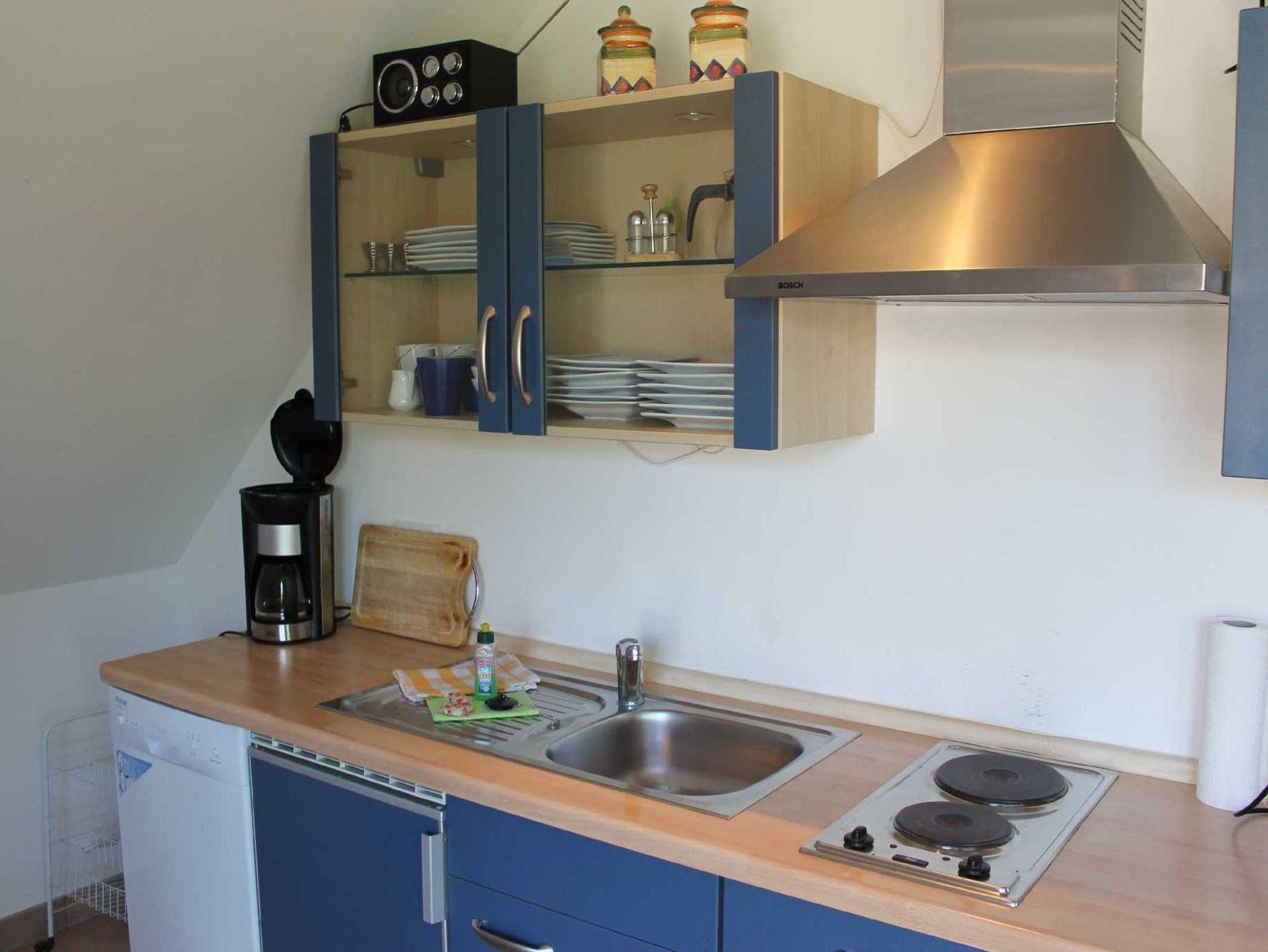 Im Haus befinden sich vier 2-Zimmer-Apartements für 2-3 Personen und ein 3-Zi.- Apartements mit einer Größe von 95 m2 für 2-5 Personen, auch für eine ganzjährige Vermietung.