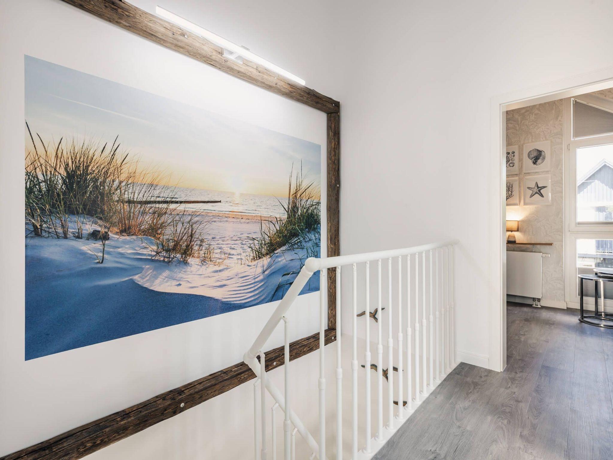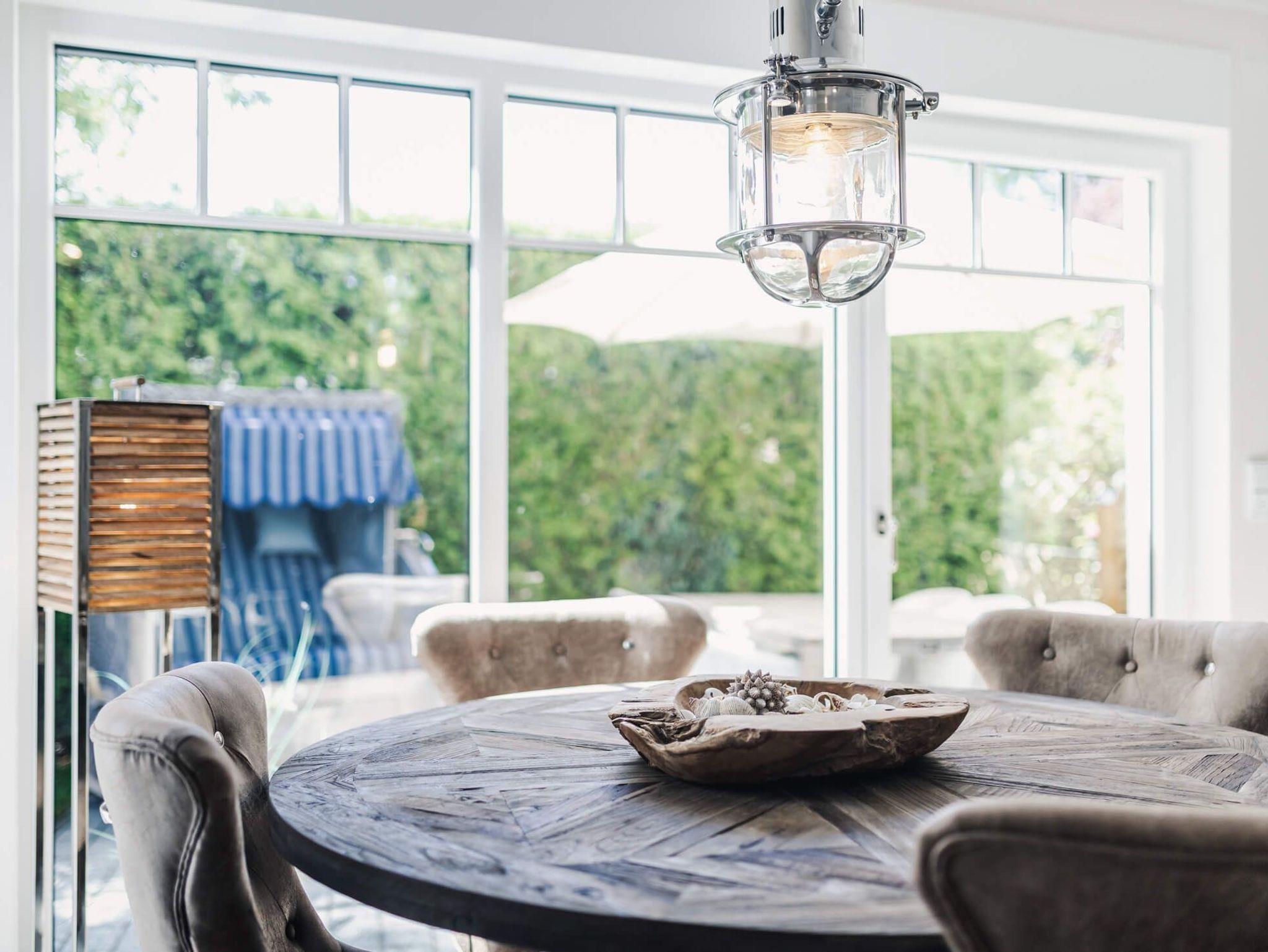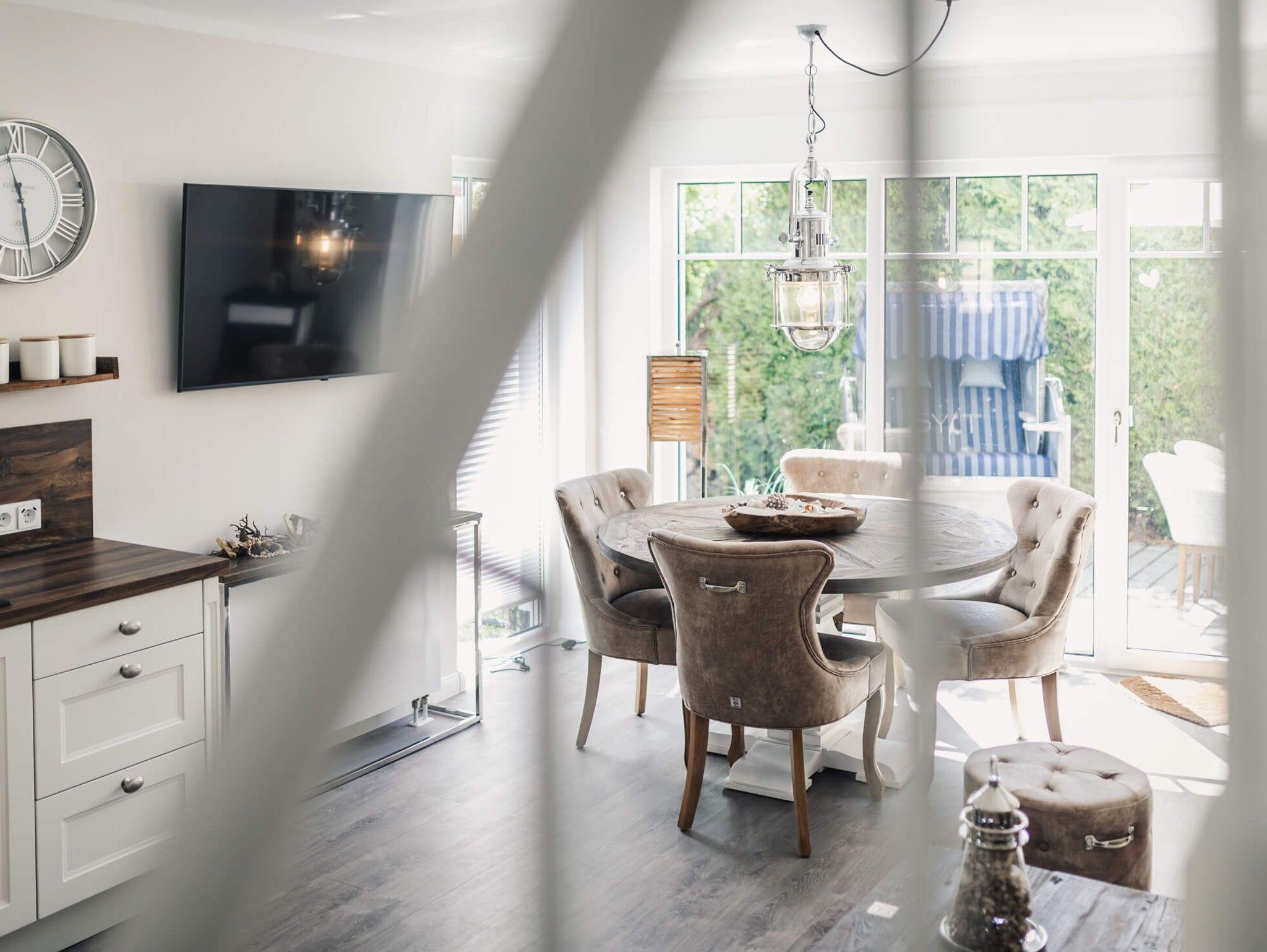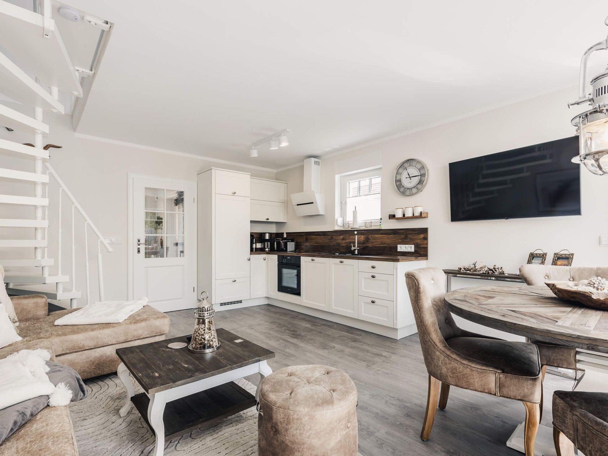 Das gesamte Haus Meerschönheit wurde liebevoll und hochwertig im Beachhouse-Stil von Riviera Maison eingerichtet. Helle Sandtöne, edles Holz und maritimer Flair lassen die lichtdurchfluteten Räume zu einem harmonischen Wohlfühlort werden.