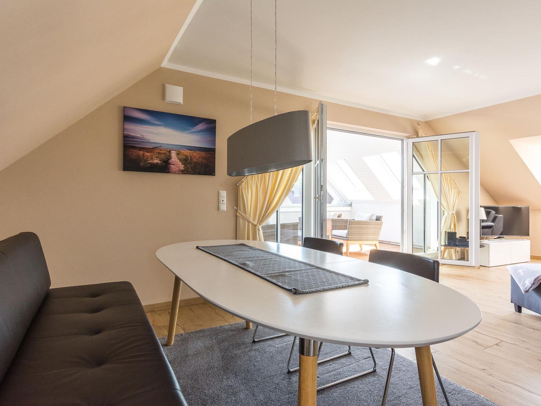Dieses modern eingerichtete Penthouse ist der ideale Ort für ruhige und entspannte Stunden am Meer.