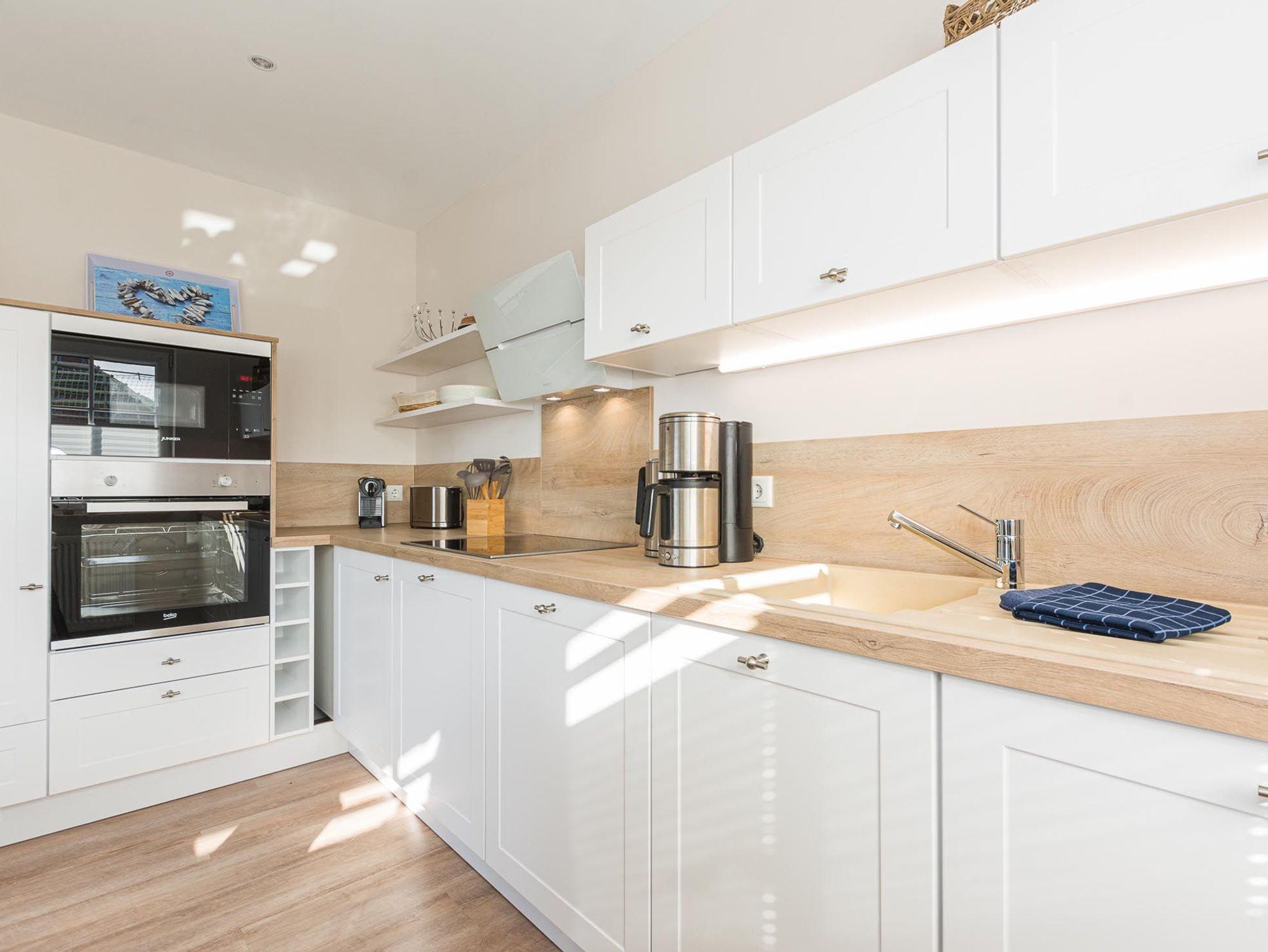 Im ersten Obergeschoss gelegen finden Sie ein helles und liebevoll eingerichtetes Wohnzimmer mit Küchenzeile. Diese ist mit sämtlichen Küchengeräten ( Mikrowelle, Toaster, Wasserkocher, Kaffeemaschine, Geschirrspüler etc.) ausgestattet.