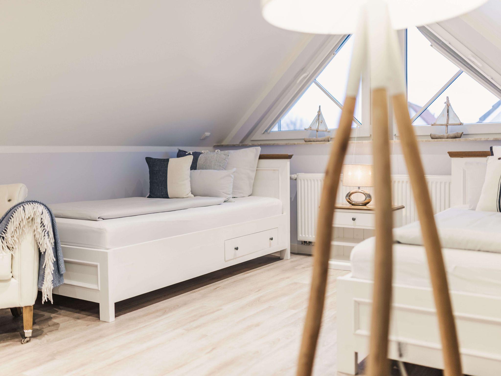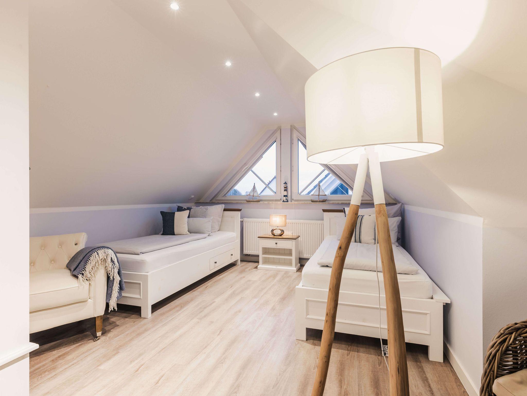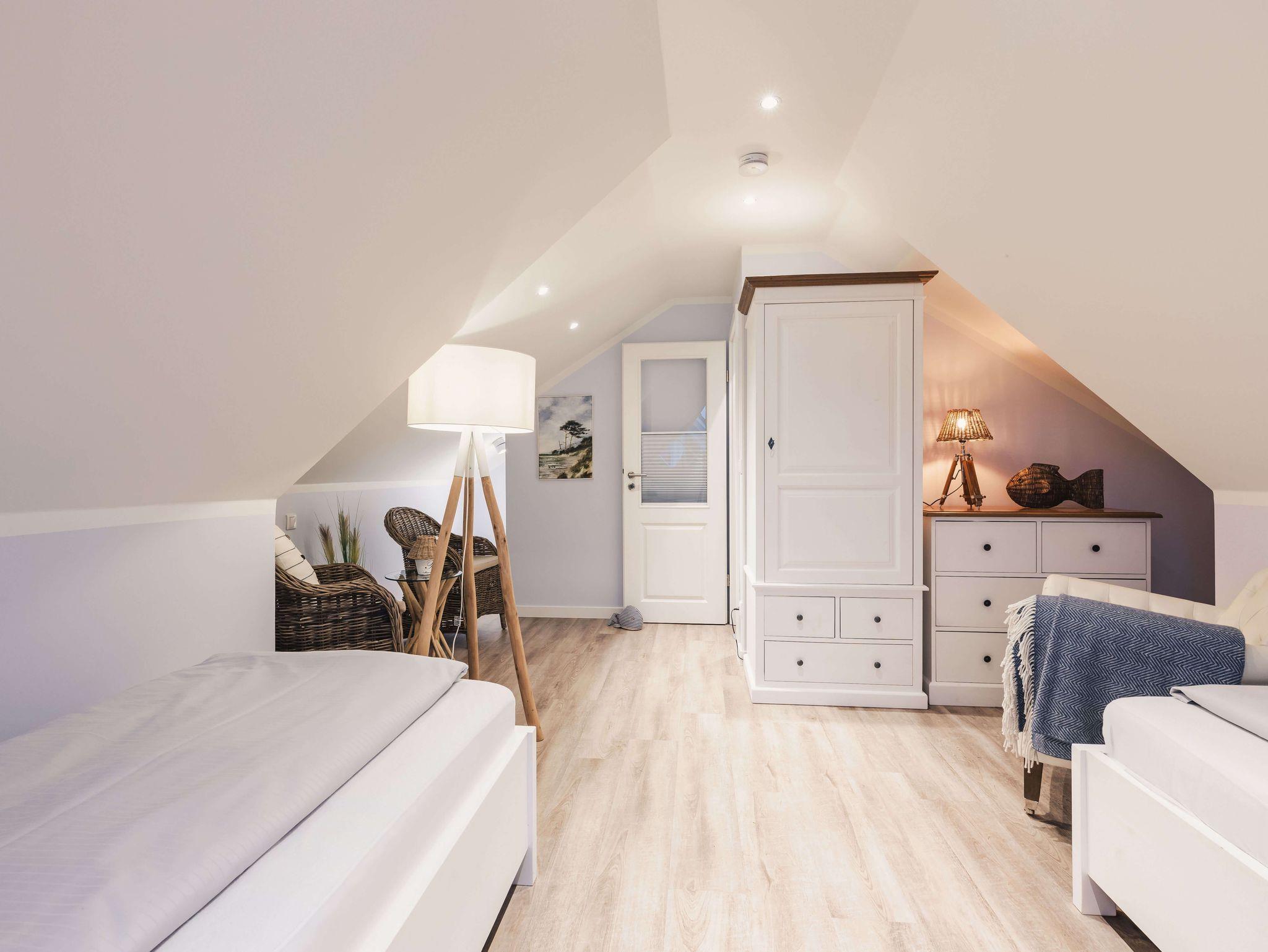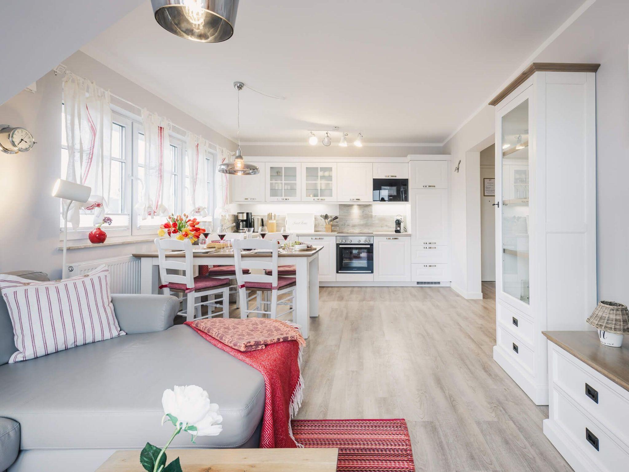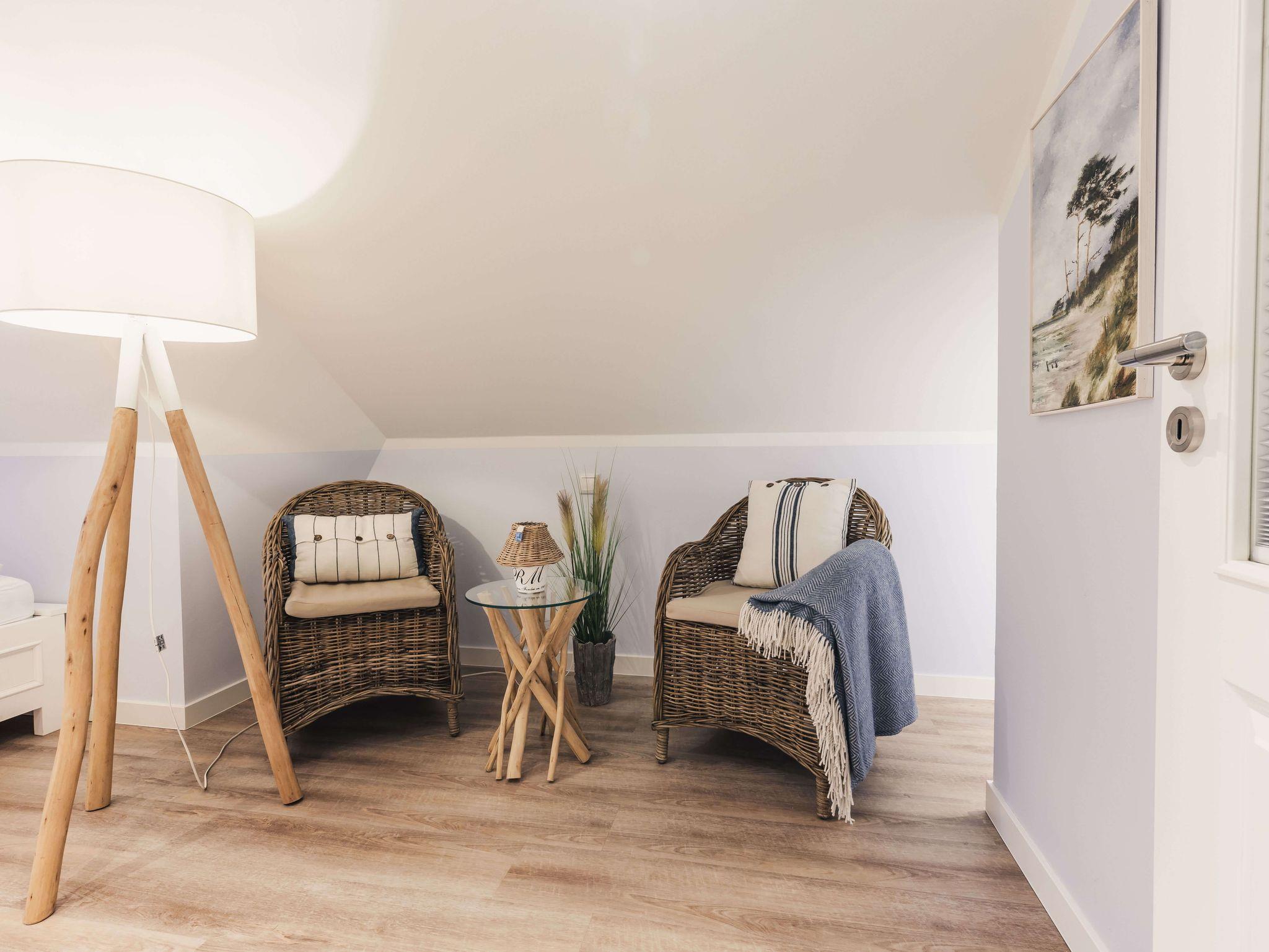 Verbringen Sie entspannte Tage in dieser neuen Maisonette-Ferienwohnung in Zingst in modernem, designorientiertem Ambiente. Auf dem Balkon können Sie gemütlich mit den ersten Sonnenstrahlen frühstücken und anschließend bequem mit dem Rad oder zu Fuß an den Strand und Ihren Urlaub in Zingst genießen. Durch die moderne und hochwertige Ausstattung kommen die hellen Räume richtig zur Geltung und sorgen für das besondere Wohlfühl-Urlaubsgefühl. Zum Appartement gehört ein PKW-Stellplatz sowie ein abschließbarer Fahrradschuppen.