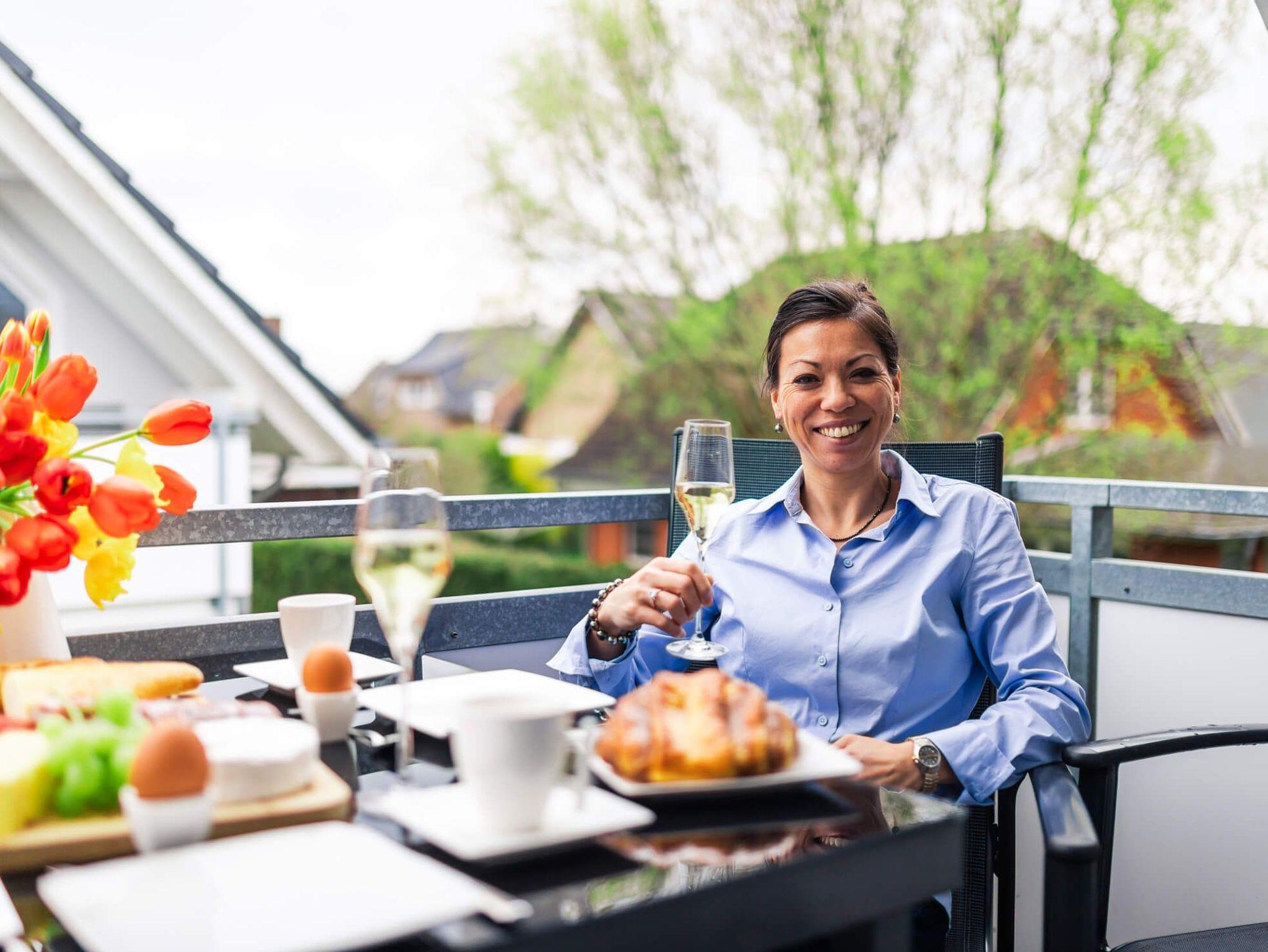 Modernes Maisonette-Appartement in Zingst mit Balkon, hochwertiger Ausstattung und Fahrradschuppen für entspannte Urlaubstage.