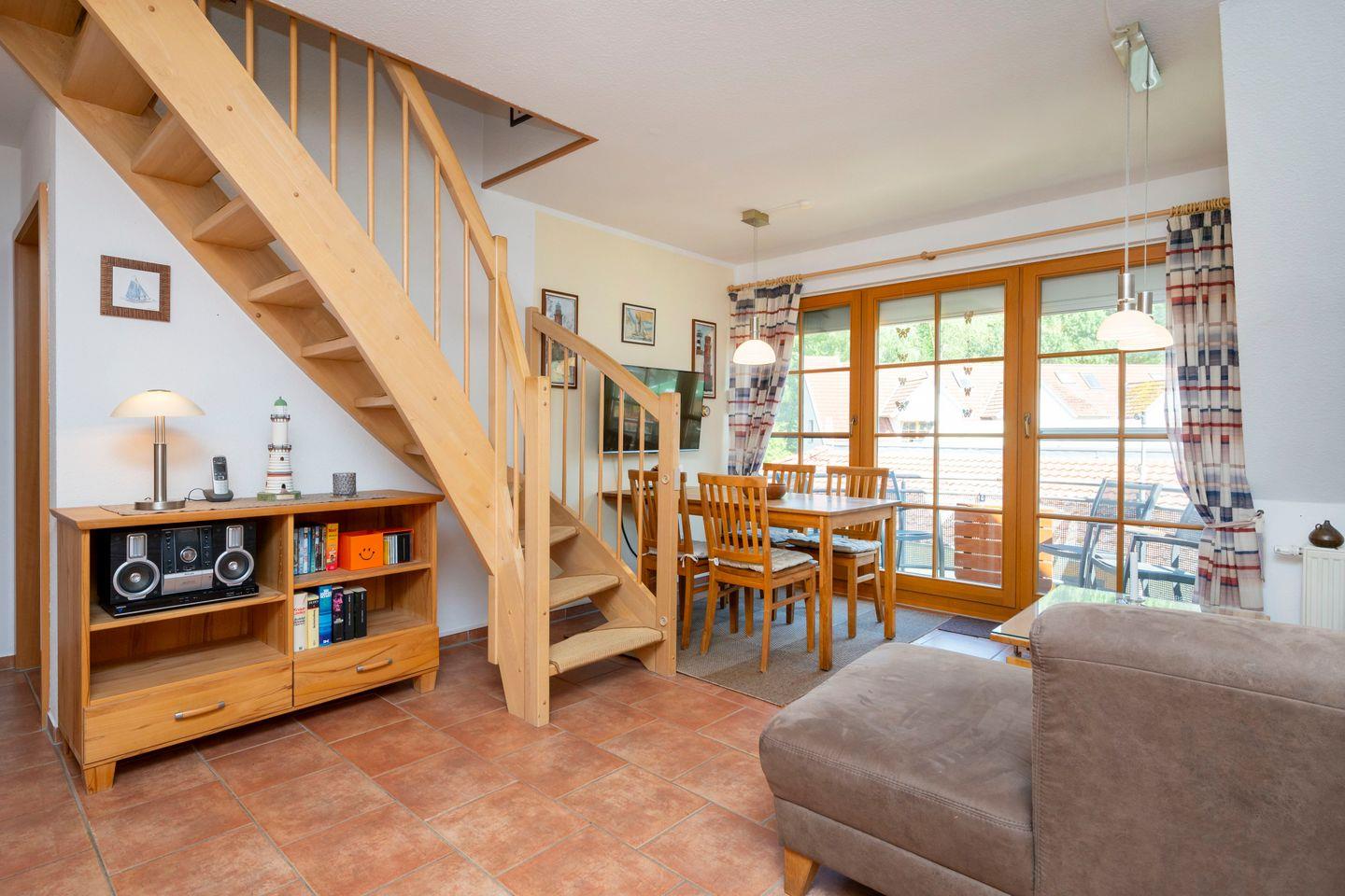 Komfortable Ferienwohnung mit Balkon, Pool und Gartenblick in Zingst, ideal für Familien und Erholung an der Ostsee.