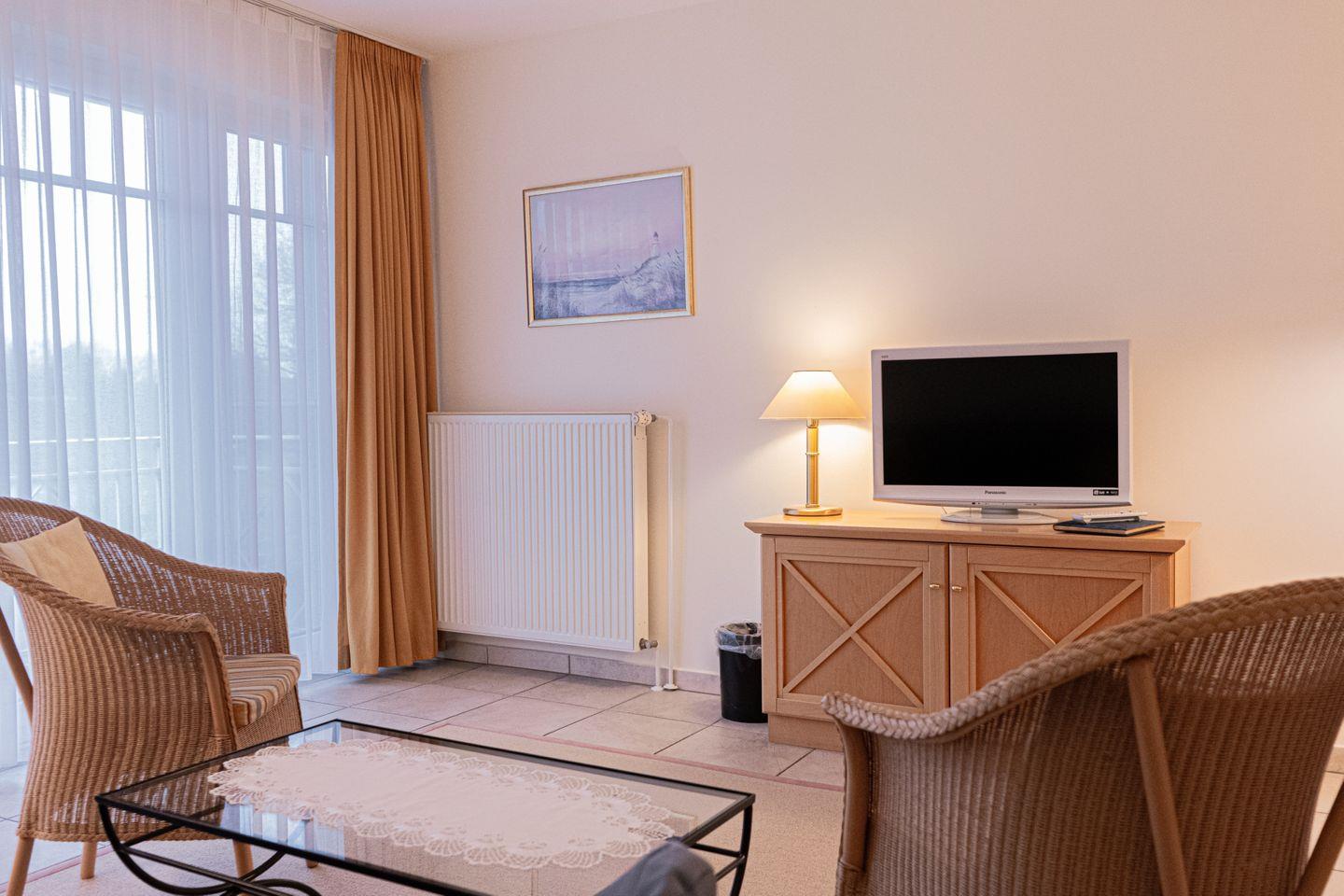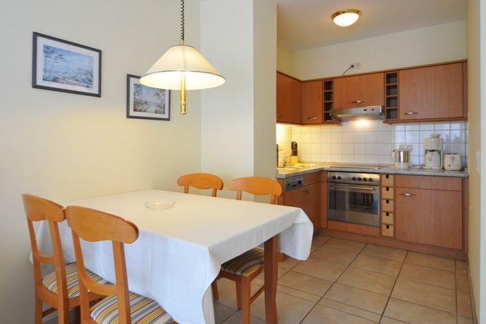 Darüber hinaus sind Bücher und Spiele vorhanden. Der Raum besitzt eine offene Küchenzeile mit allem Komfort, wie Geschirrspüler, Backofen und Mikrowelle uvm.