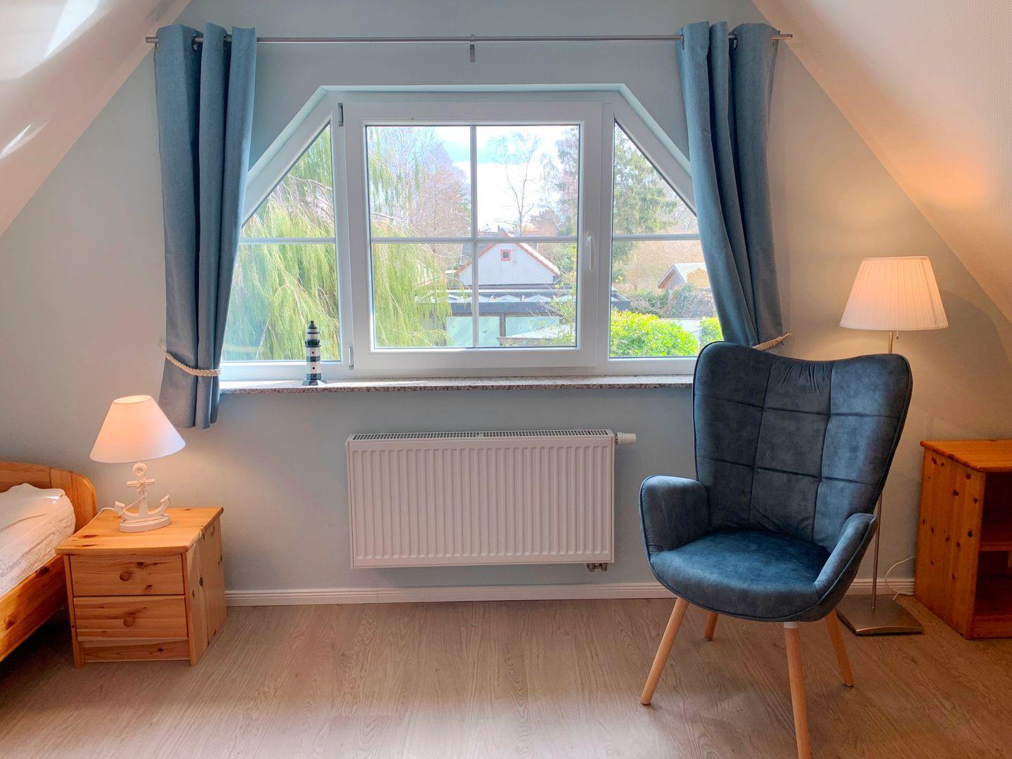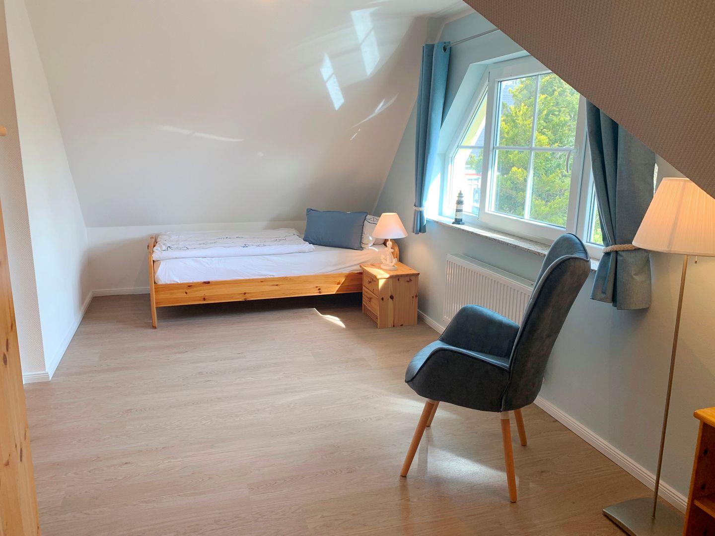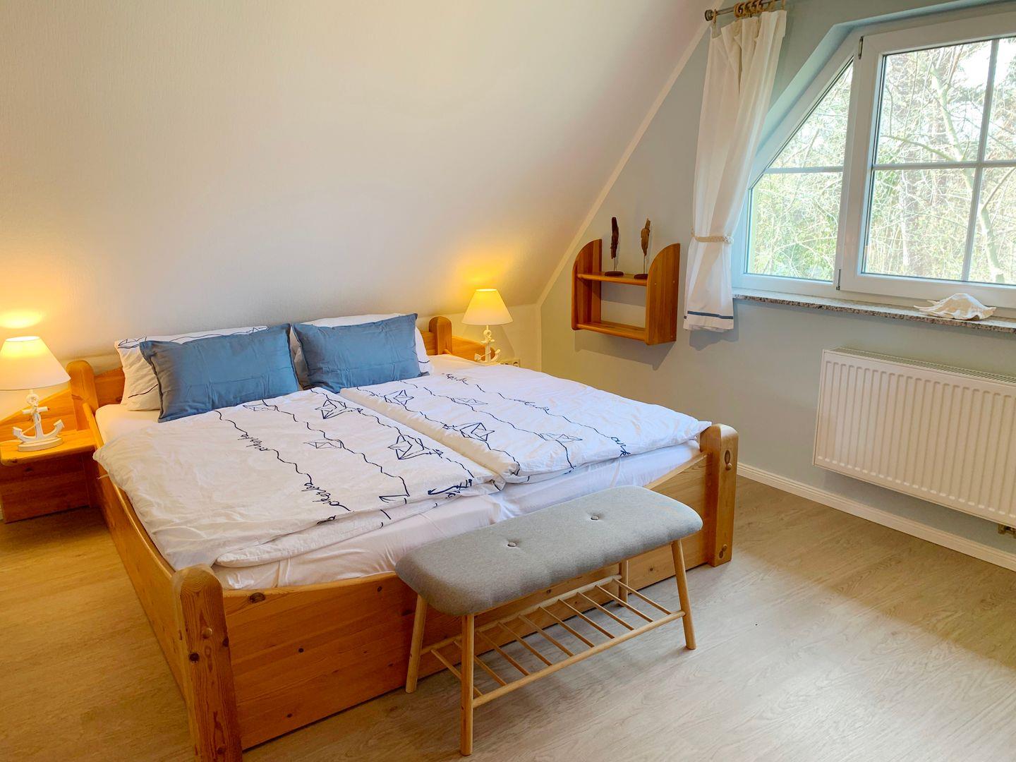 Die beiden Schlafzimmer befinden sich in der 1. Etage und sind mit einem Doppelbett und zwei Einzelbetten ausgestattet. Ein zusätzliches Gäste-WC befindet sich ebenso auf der Etage.