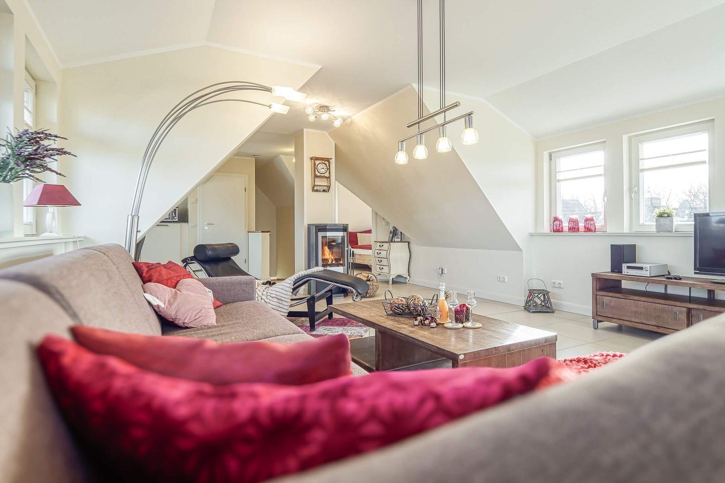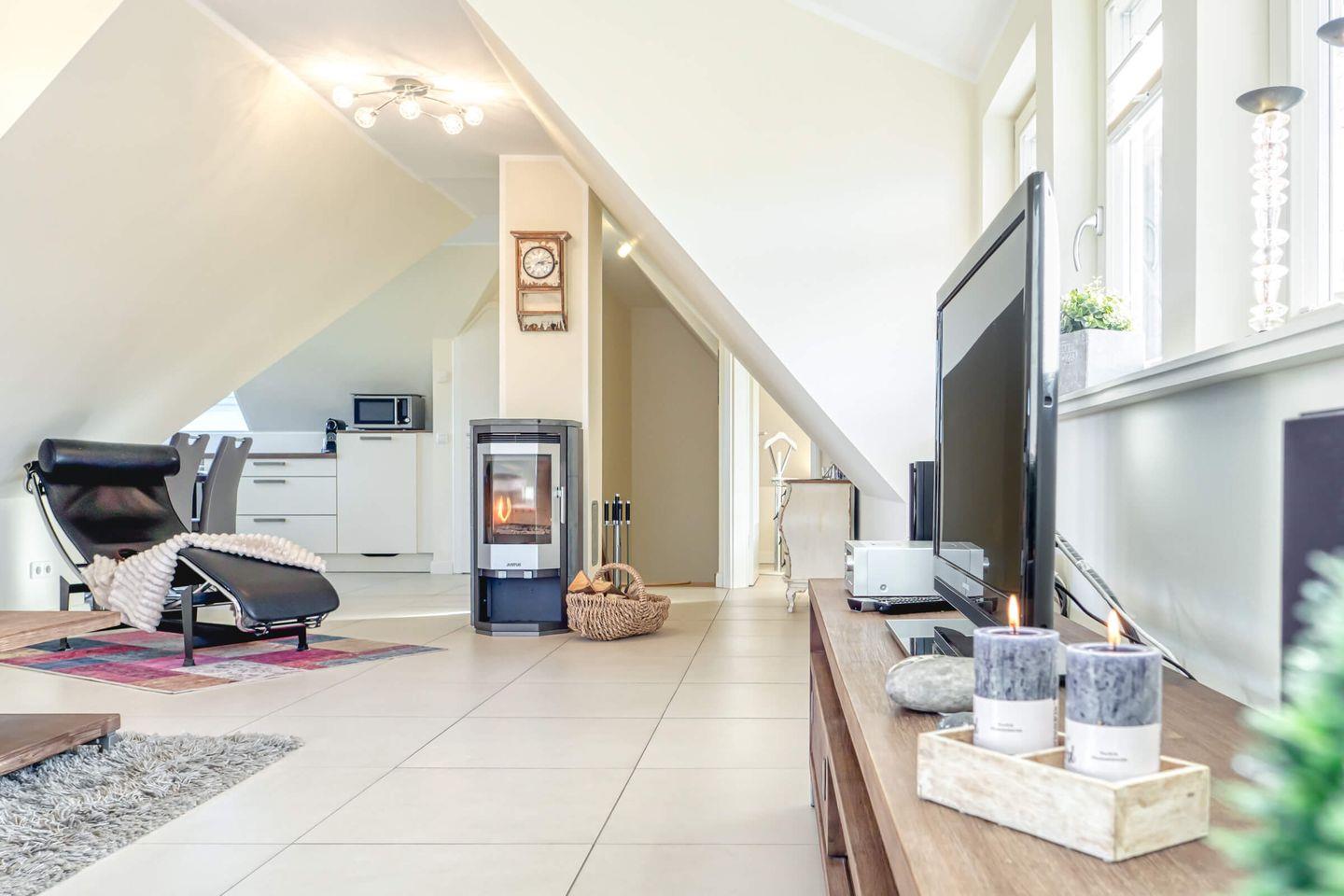 Moderne Ferienwohnung mit Kamin, Balkon und Nähe zum Ostseestrand in Zingst für erholsame Urlaubstage.