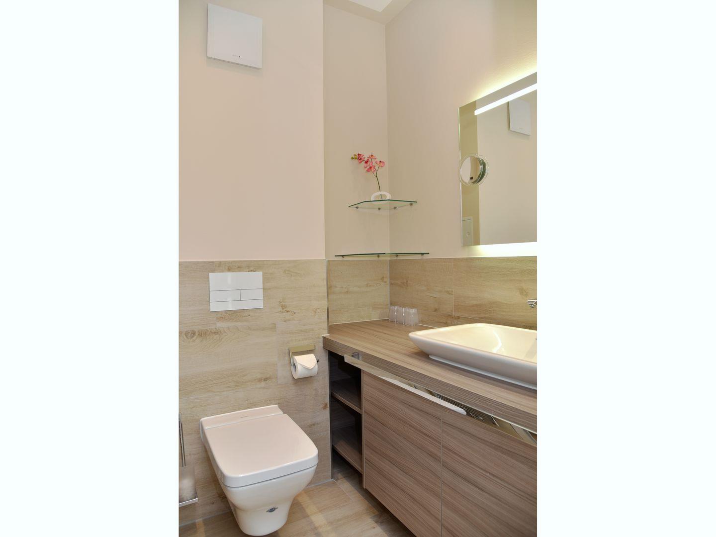 In der neu errichteten Suite befindet sich der Wohnbereich mit Couch- und Essecke und einer komfortabel ausgestatteten Küchenzeile, ein Bad mit ebenerdiger Dusche und das Schlafzimmer mit Boxspringbetten.
