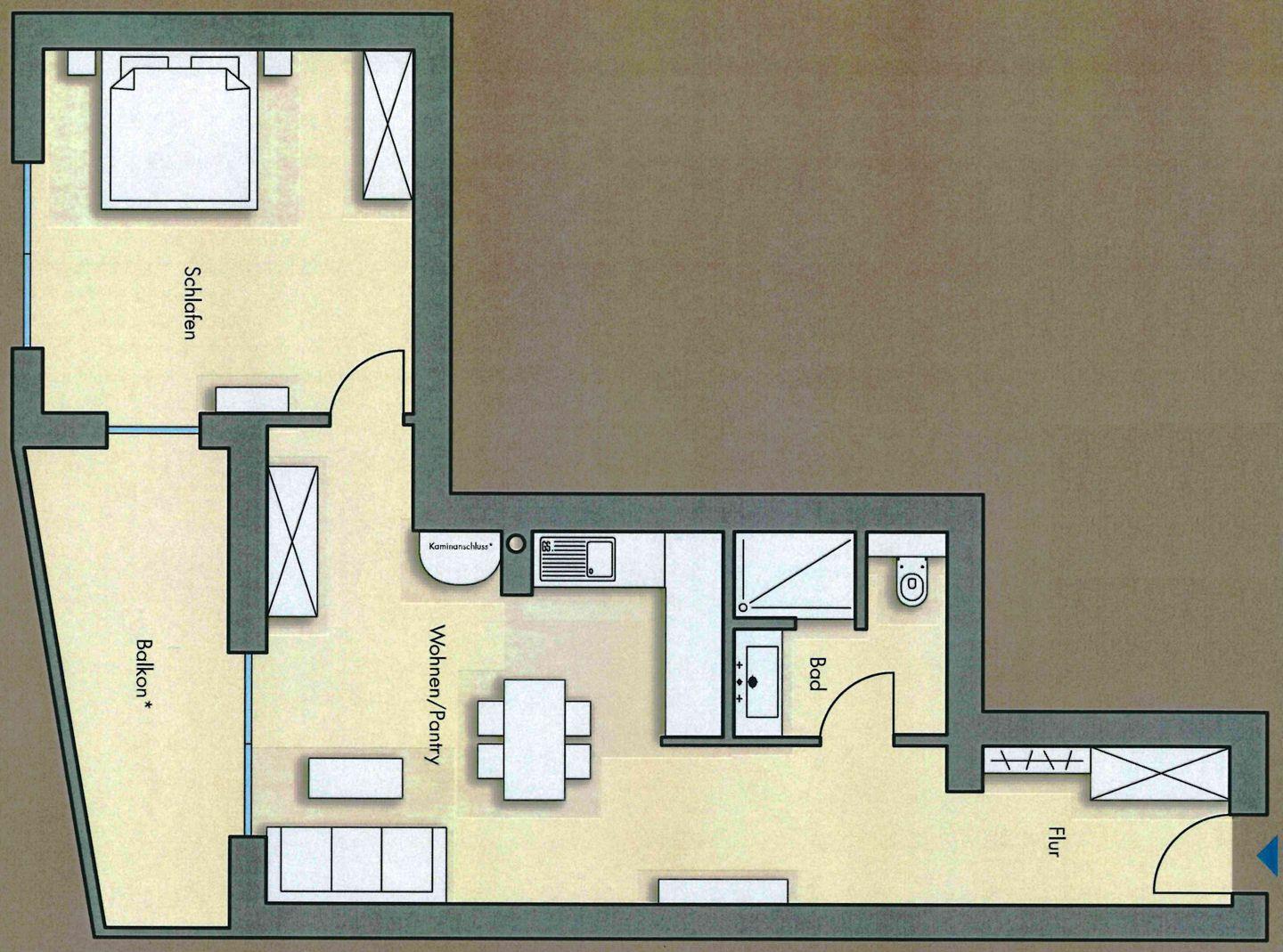Den großen überdachten nicht einsehbaren Balkon, der sich in schöner Südlage befindet, erreichen Sie über den Wohn- Schlafraum.