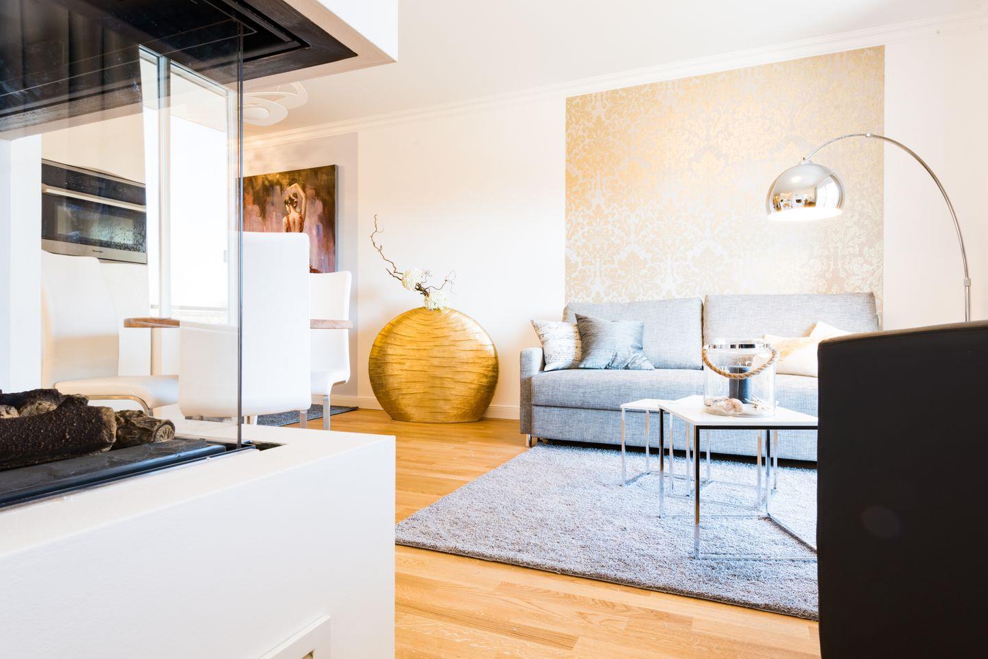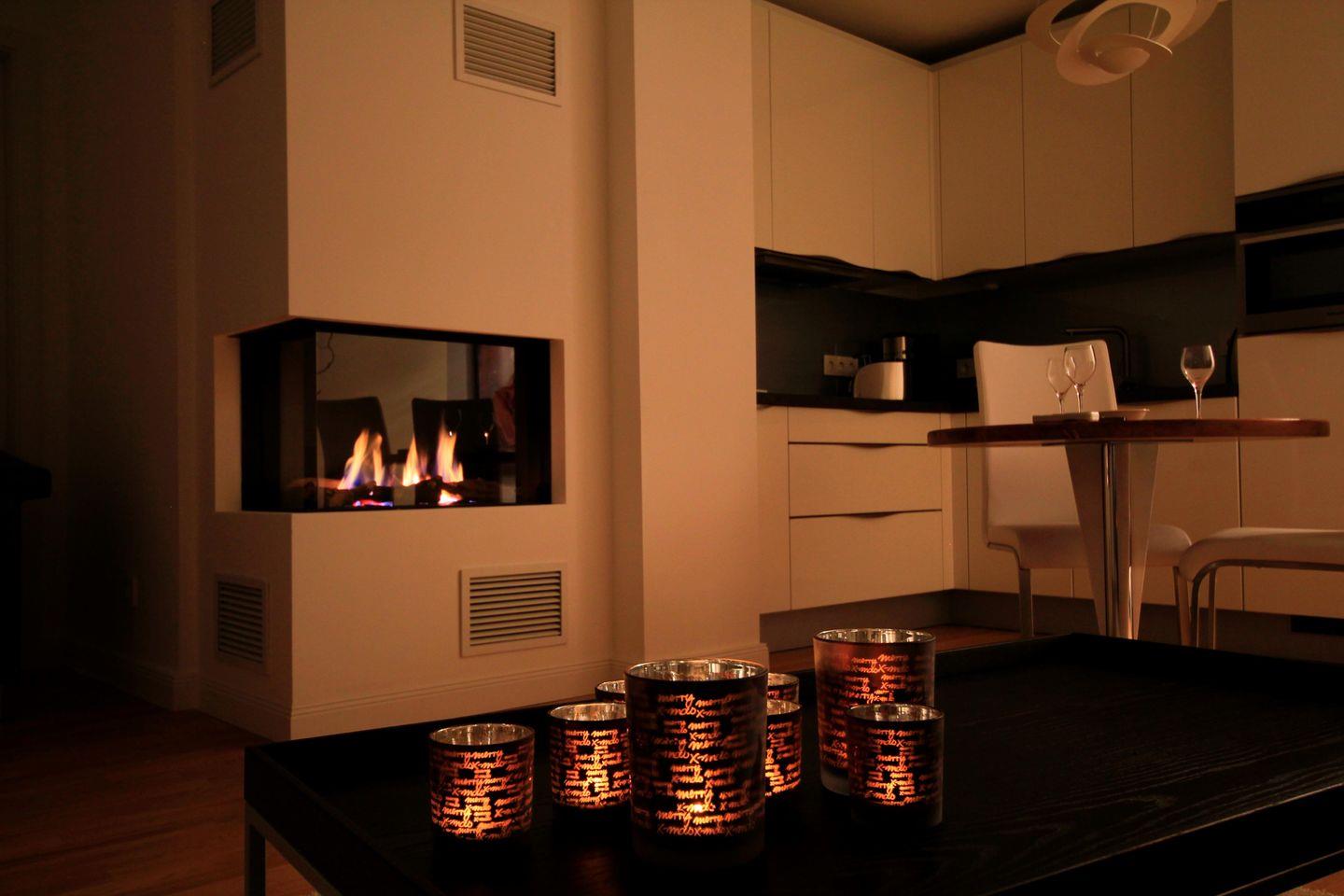 Die bodentiefen Fenster sorgen für viel Licht in den Zimmern. An kühlen Tagen erfreuen Sie sich an der kuscheligen Wärme, die Ihnen der Gaskamin spendet.