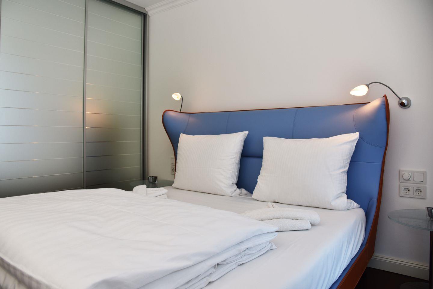 Im separaten Schlafzimmer mit Einbauschrank und Safe ruhen Sie bequem auf einem stylischen großen Doppelbett.