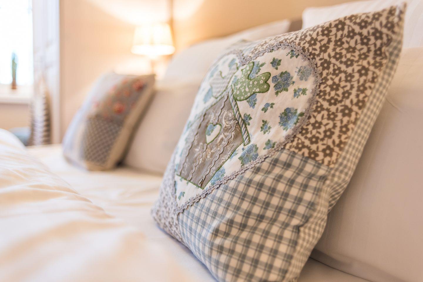 Das Schlafzimmer ist ausgestattet mit einem bequemen Boxspringbett.