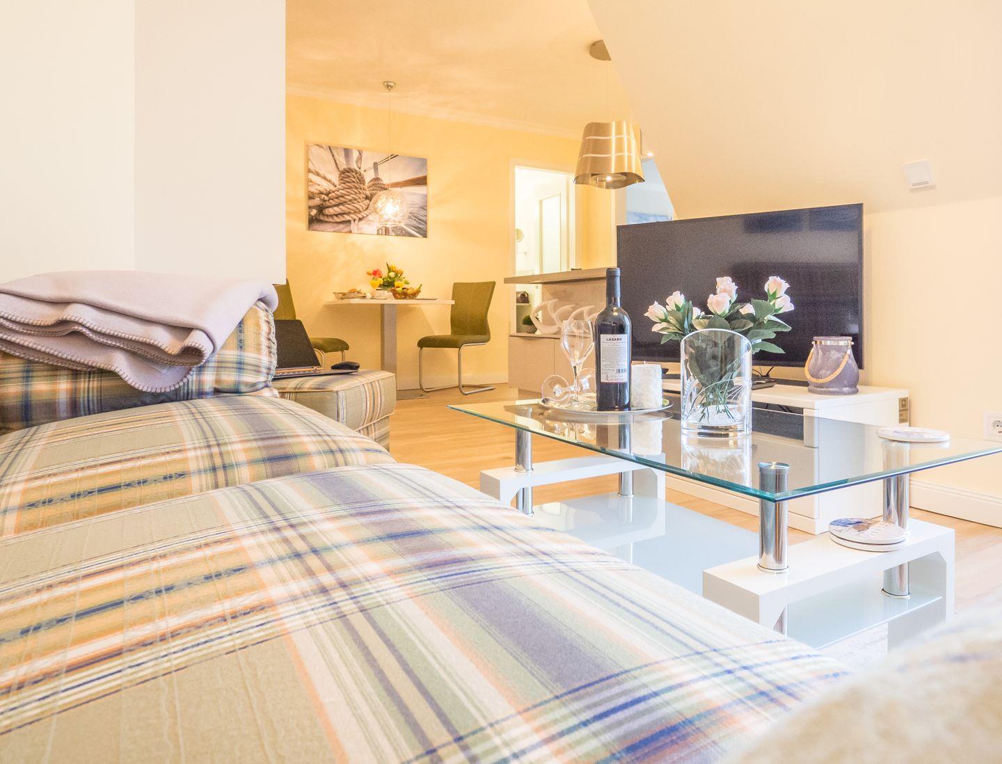 Die etwa 60 m² große Strandsuite im 2. Obergeschoss des "Logierhauses Friedrich" ist modern eingerichtet und bietet ausreichend Platz für 2 Personen.