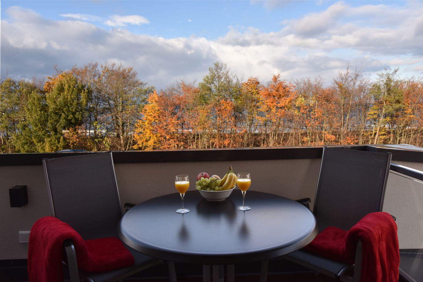 Von jedem Zimmer aus gelangen Sie auf den möblierten Nord-Ost Balkon mit Seeblick und traumhaften Ausblick auf das Kurhaus.