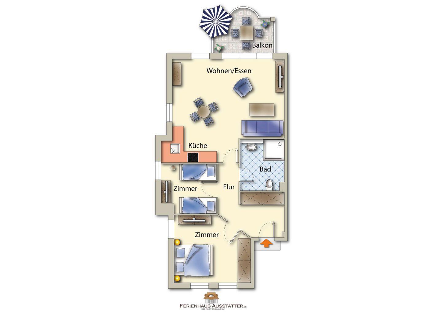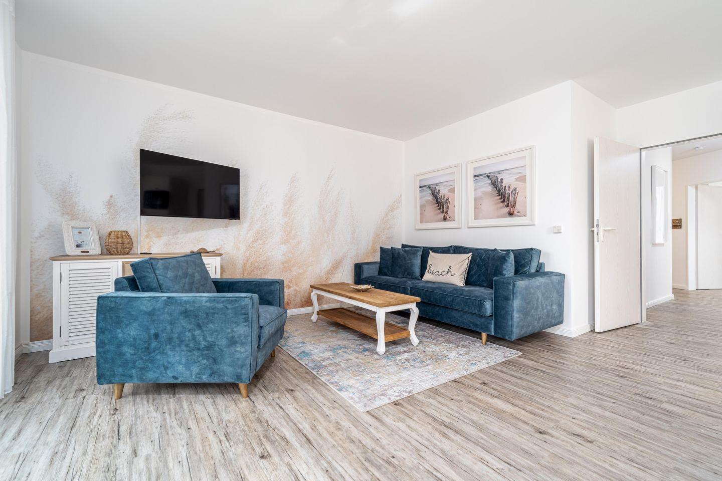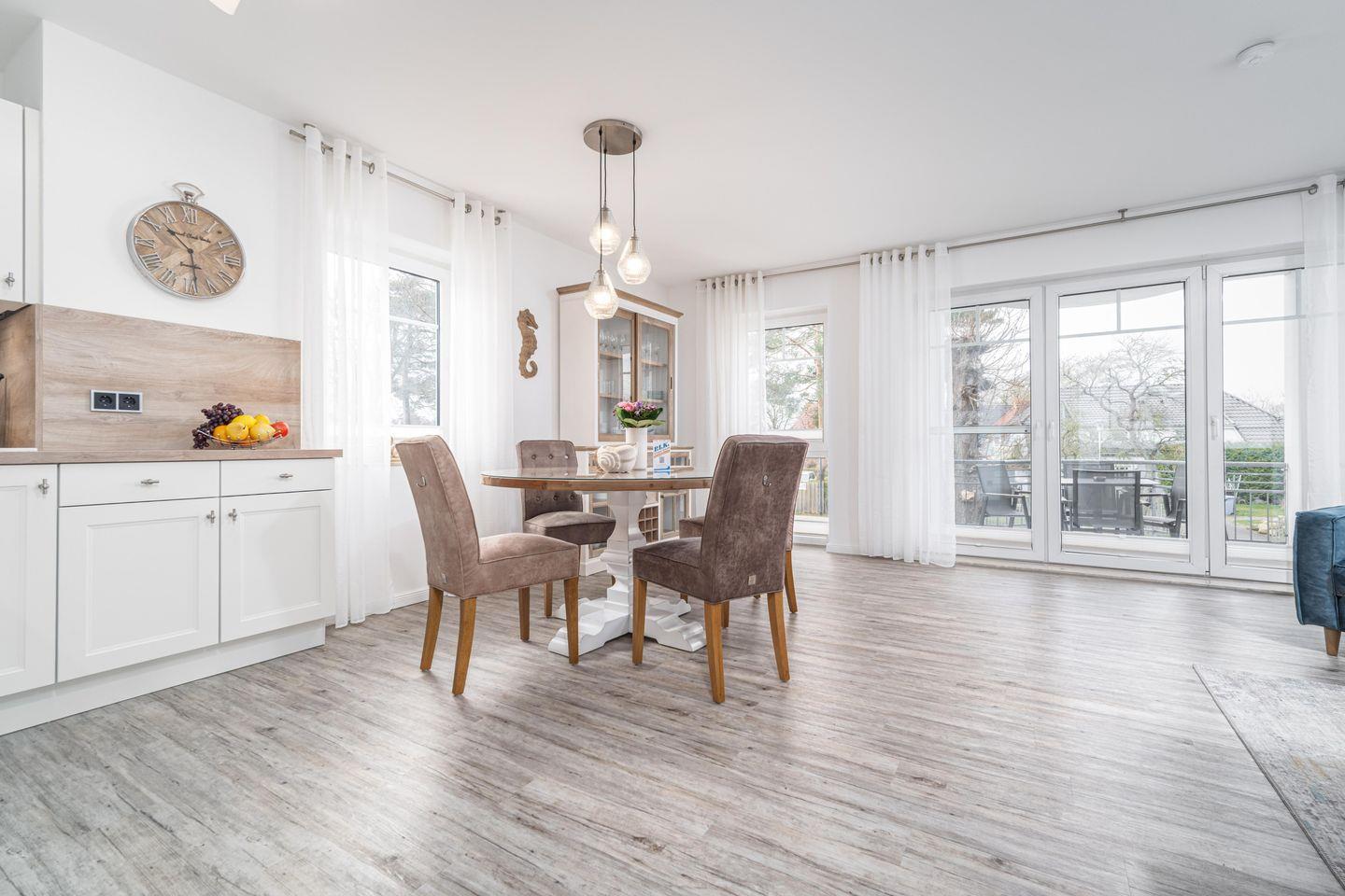 Komfortable Ferienwohnung mit Balkon, Fußbodenheizung und moderner Küche in Zingst, nahe Hafen und Strand gelegen.