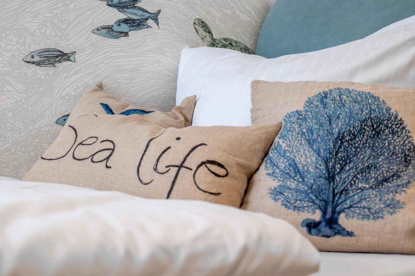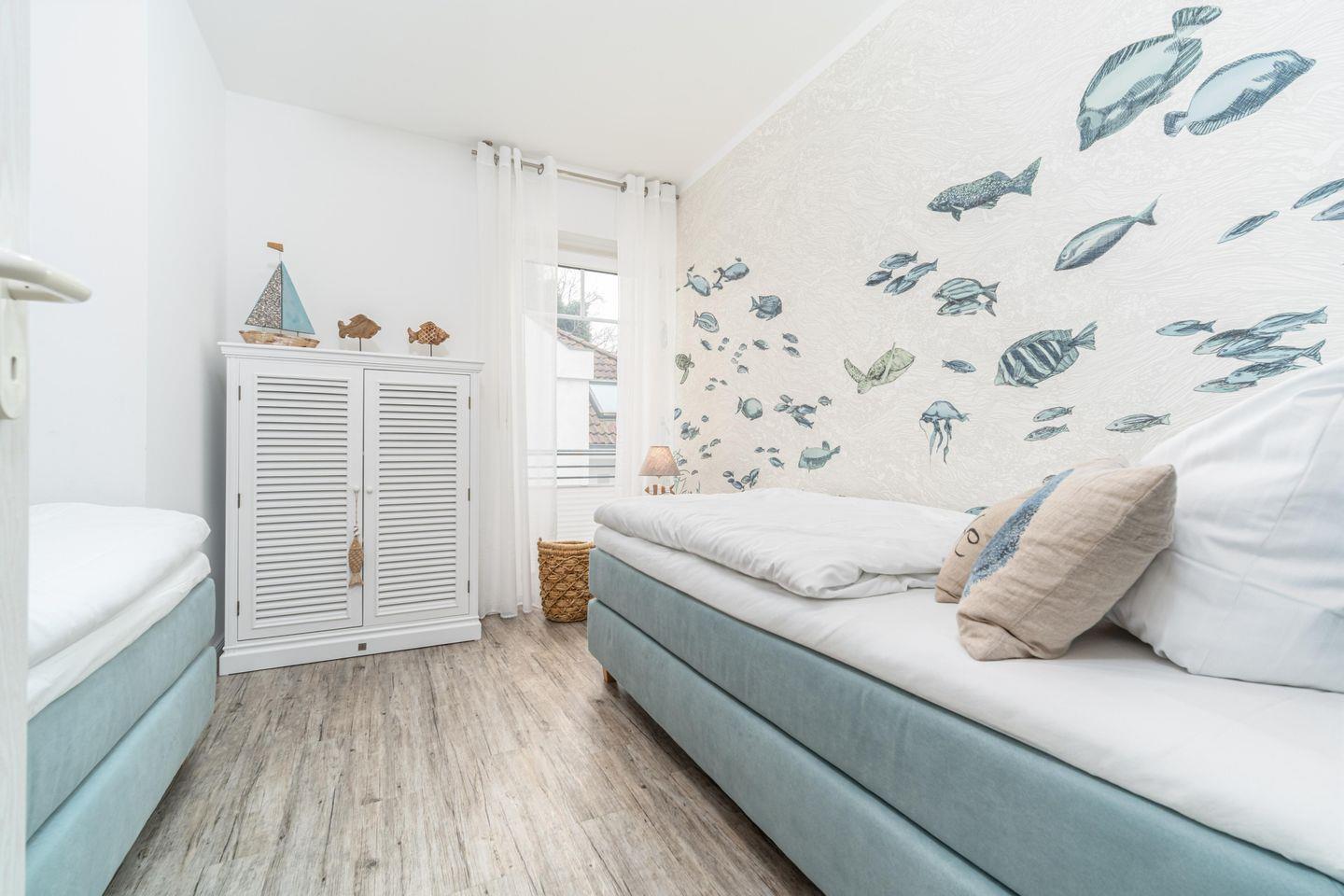 Ein Schlafzimmer mit Doppelbett sowie ein weiteres mit zwei Einzelbetten bieten einen ruhigen Schlaf.