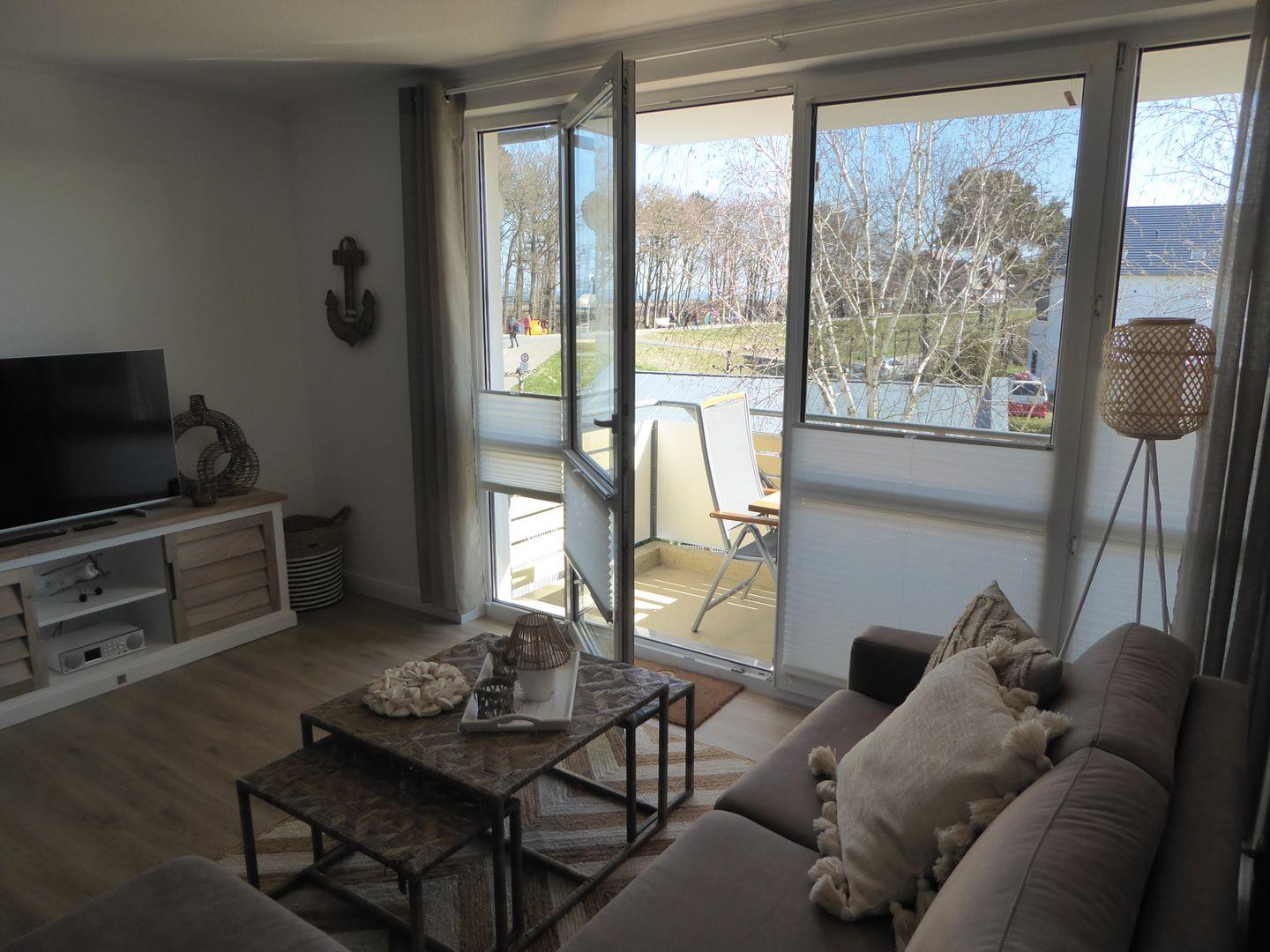 In heller und freundlicher Atmosphäre bietet sie auf 50 m² einen großen Wohnraum mit ausklappbarer Schlafcouch und integrierter vollausgestatteter Küche, ein separates Schlafzimmer mit Doppelbett (gr. Matratzentopper über beide Bettseiten) sowie geräumigen Flur und ein Duschbad.