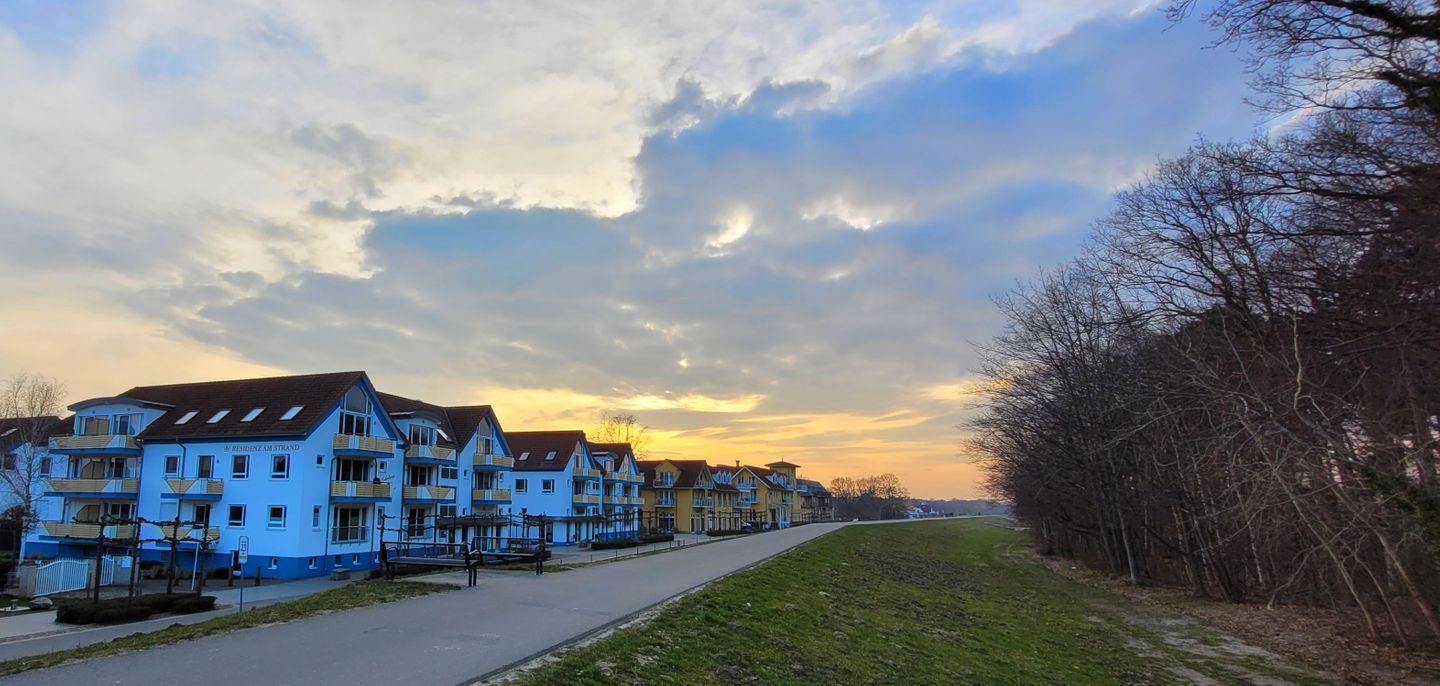 Moderne Ferienwohnung in erster Reihe am Strand mit Balkon und Panoramablick auf die Ostsee.