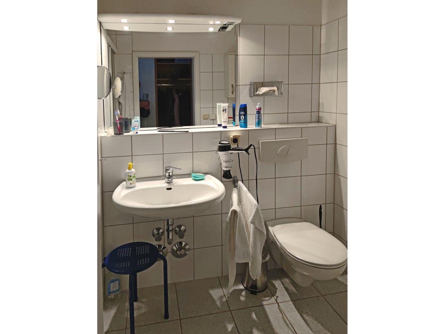 Es ist eine Zweizimmerwohnung welche neben dem großen Wohnraum mit Essbereich (4 Stühle) über eine moderne Küchenzeile mit Ceranfeldern und Mikrowelle verfügt.