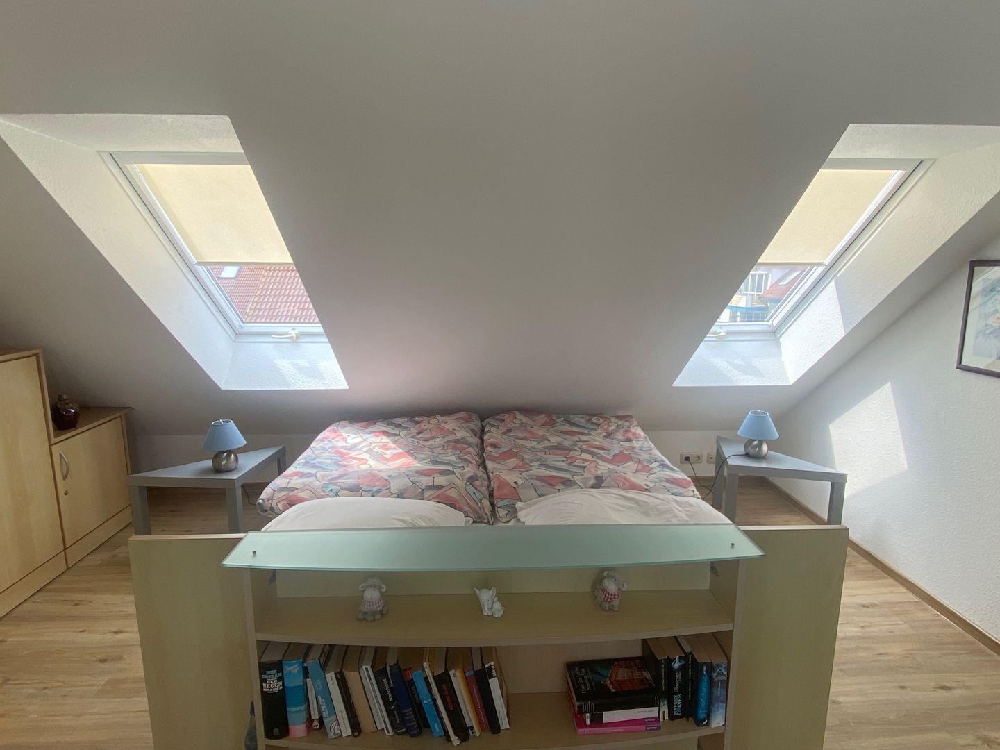 In der oberen Ebene finden Sie das Schlafzimmer mit einem Doppelbett und einer gemütlichen Leseecke und nicht zu vergessen ein Dachfenster, welches aus jeder Perspektive einen Blick und das Rauschen von Wellen der wunderschönen Ostsee erlaubt.
