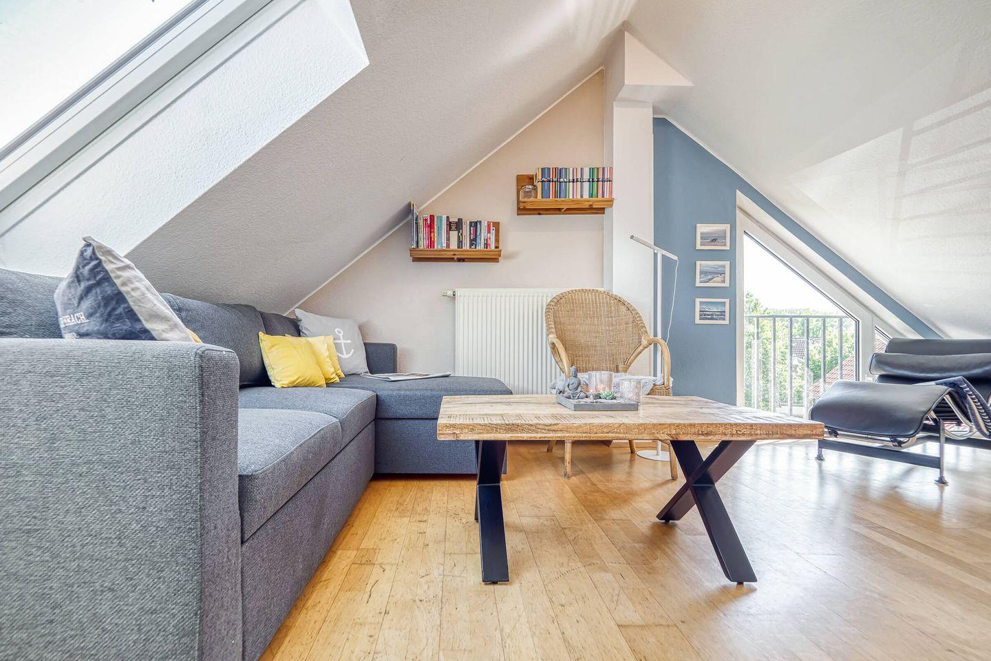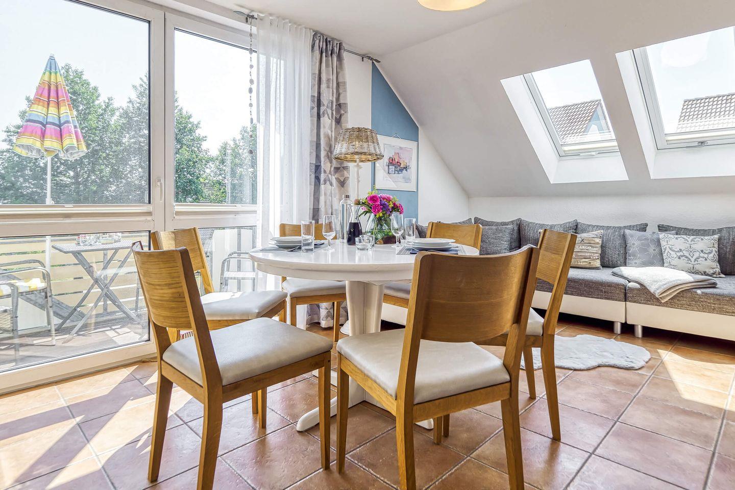 Egal, ob mit den Kindern, Freunden oder einfach nur zu zweit: Die Ferienwohnung „Seeschwalbe“ ist hierfür der ideale Ort. Direkt am Deich und dem wunderschönen kilometerlangen Sandstrand des Darß gelegen, bietet die helle und freundliche Maisonette-Wohnung auf zwei Etagen hinreichend Platz für vier, im Bedarfsfall auch für bis zu sechs Personen.