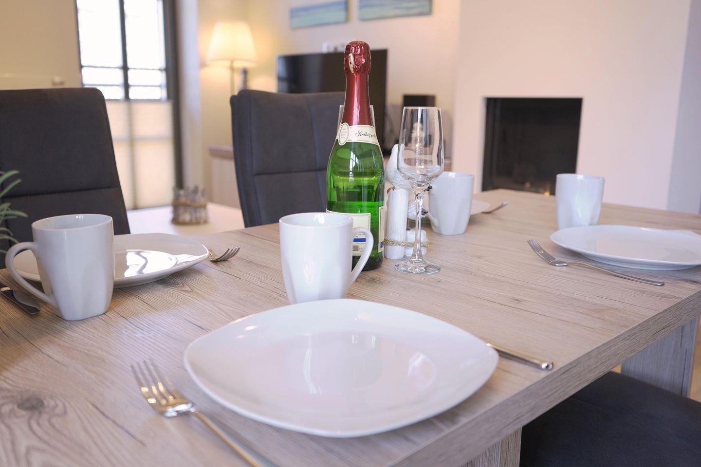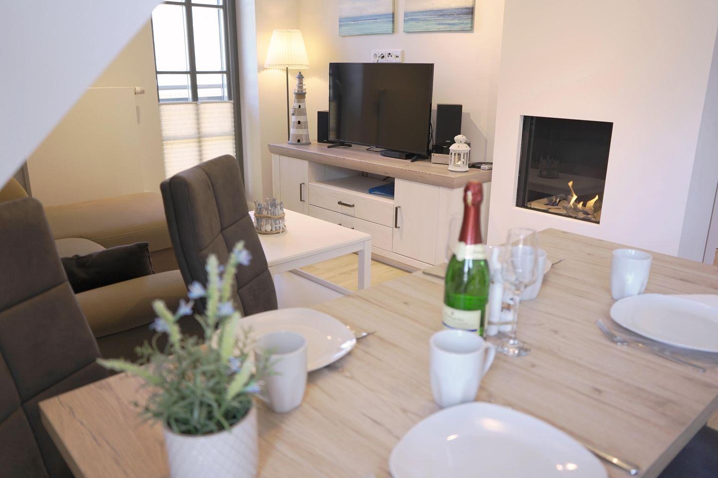 Die hochwertige Ferienwohnung Strandperle in ruhiger Lage nahe Strand und Bodden bietet Komfort für 5 Personen mit Balkon und Kamin.