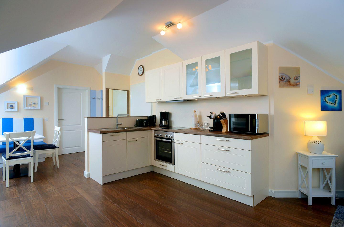 Diese neue und modern eingerichtete Ferienwohnung ist 69 m² groß und besteht aus einem Wohnbereich mit integrierter Küche.