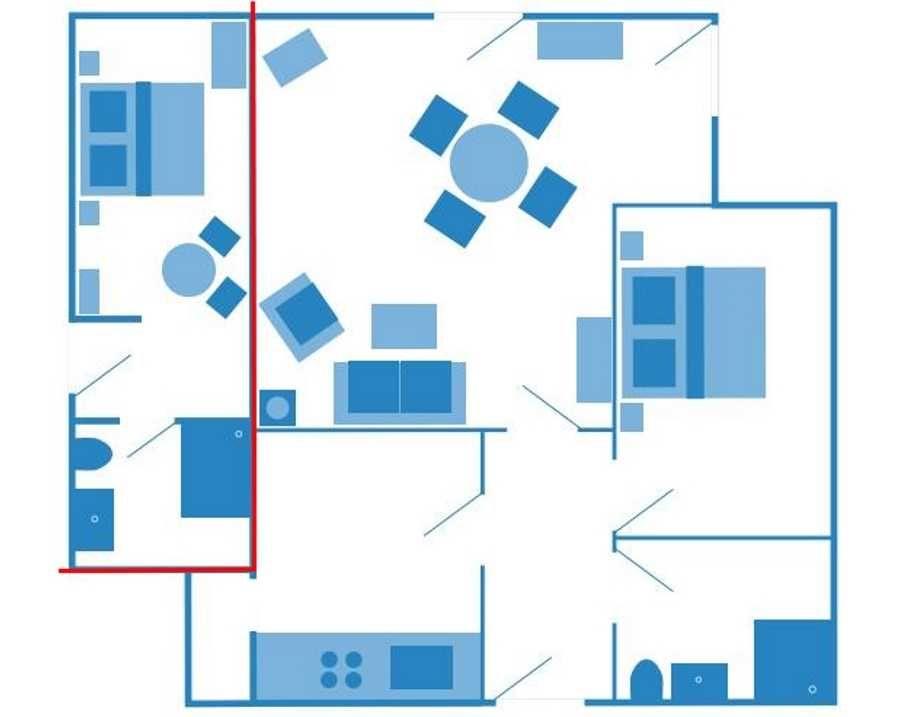 Die größere Ferienwohnung ist 57 m² groß & verfügt über ein Wohnzimmer, Schlafzimmer, Flur, Küche & Badezimmer mit bodentiefer Dusche.