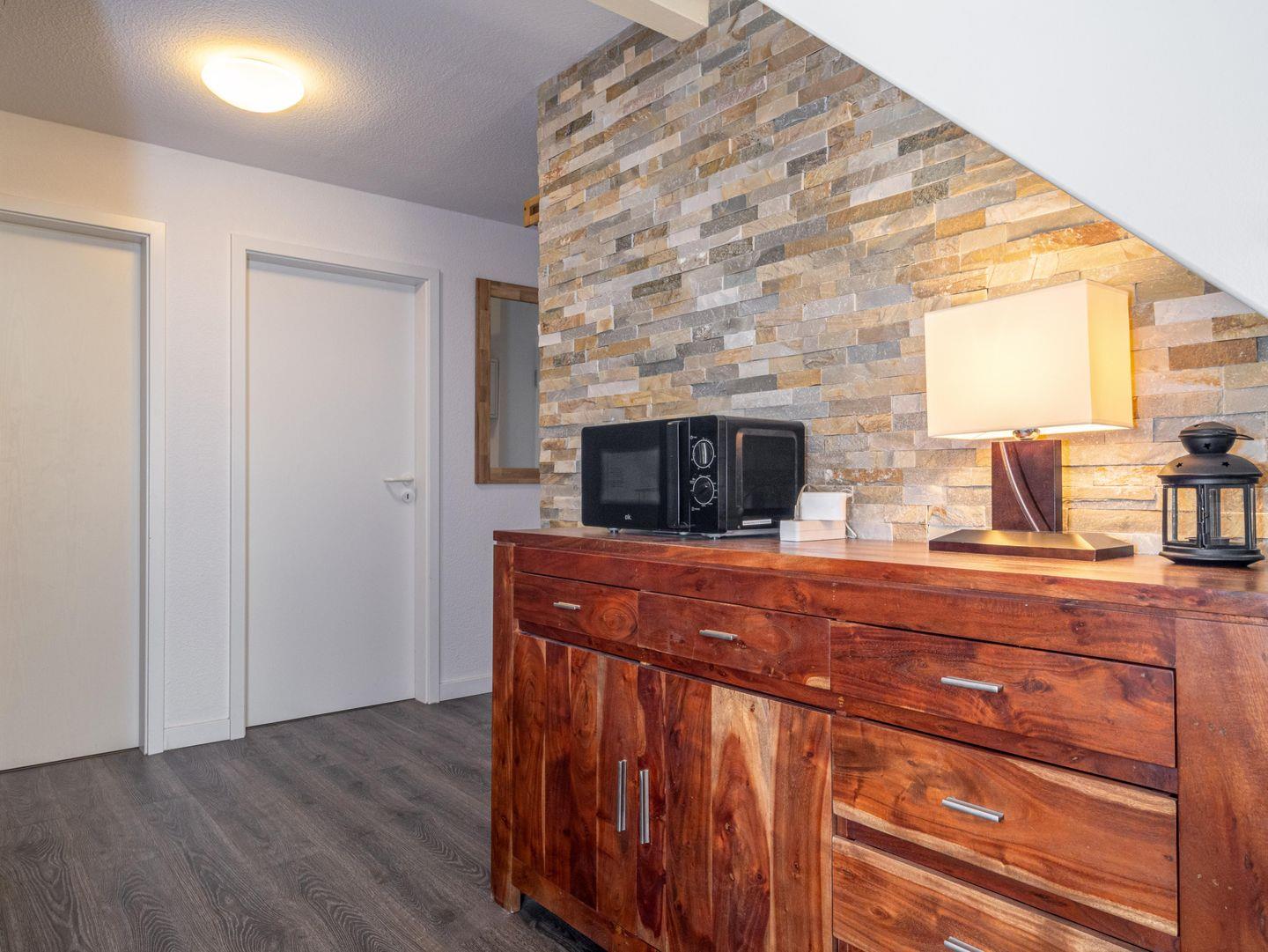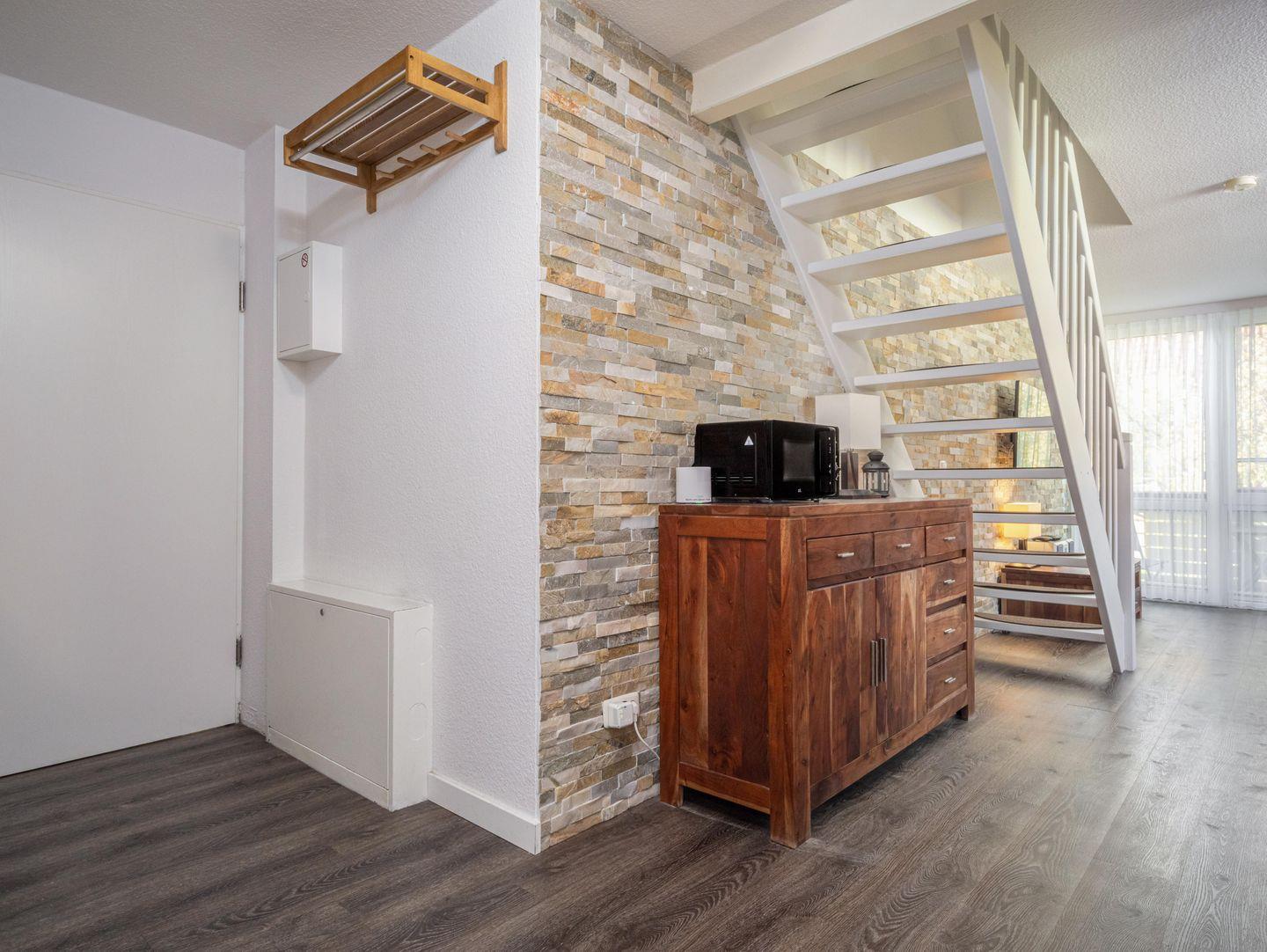 Die Wohnung entfaltet sich auf zwei Ebenen in einem warmen, einladenden Ambiente. Ihr erster Blick fällt auf das charmante Schlafzimmer mit zwei Einzelbetten, ideal für eine ruhige Nacht. Gleich daneben befindet sich das zweite Schlafzimmer mit einem komfortablen Doppelbett, das zum Entspannen einlädt. Das moderne Badezimmer mit Dusche und WC ist ein weiteres Highlight, das keine Wünsche offen lässt.